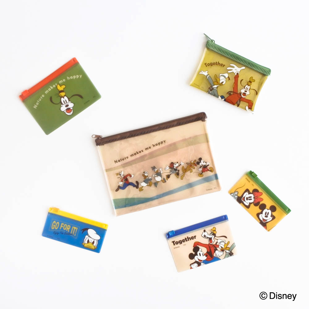 ステーショナリーや小物類の収納に便利なファスナーケースのセットやフラットポーチ。