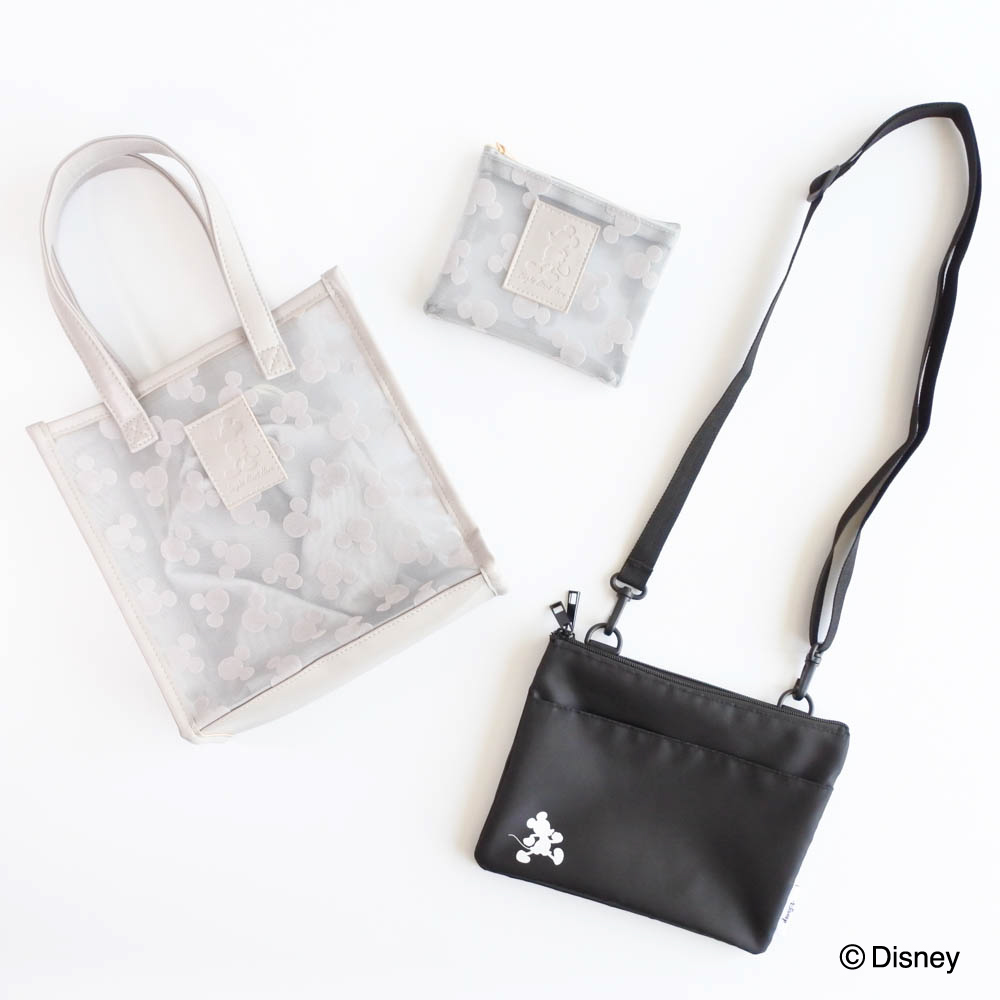 ミッキーモチーフを散りばめた、メッシュタイプのトートバッグとミニポーチが登場。