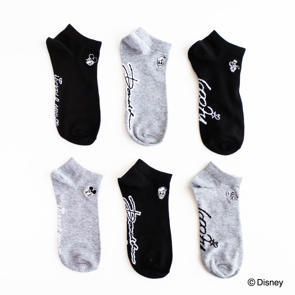 「ミッキーマウス」や「ドナルドダック」「グーフィー」のワンポイントが刺繍された靴下。