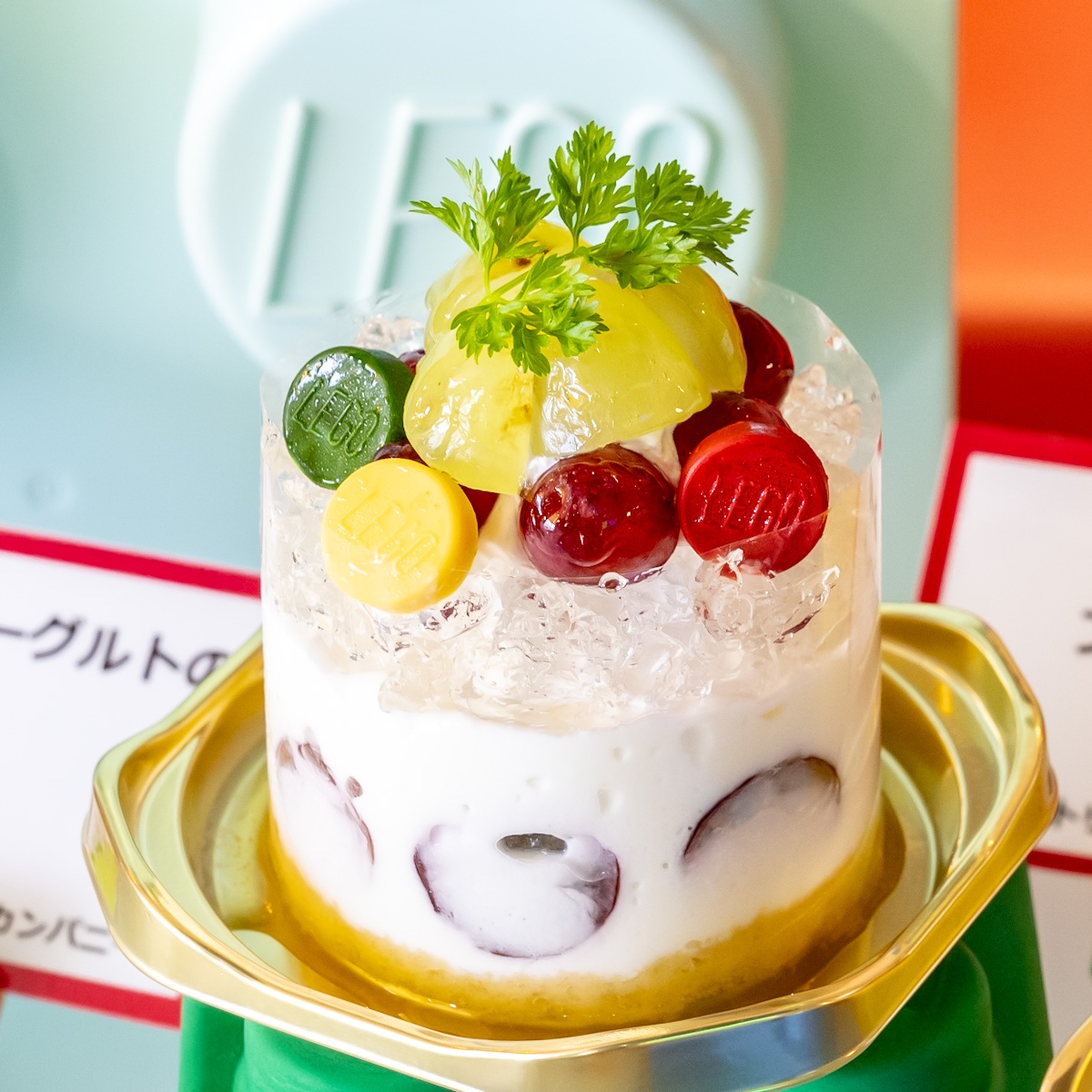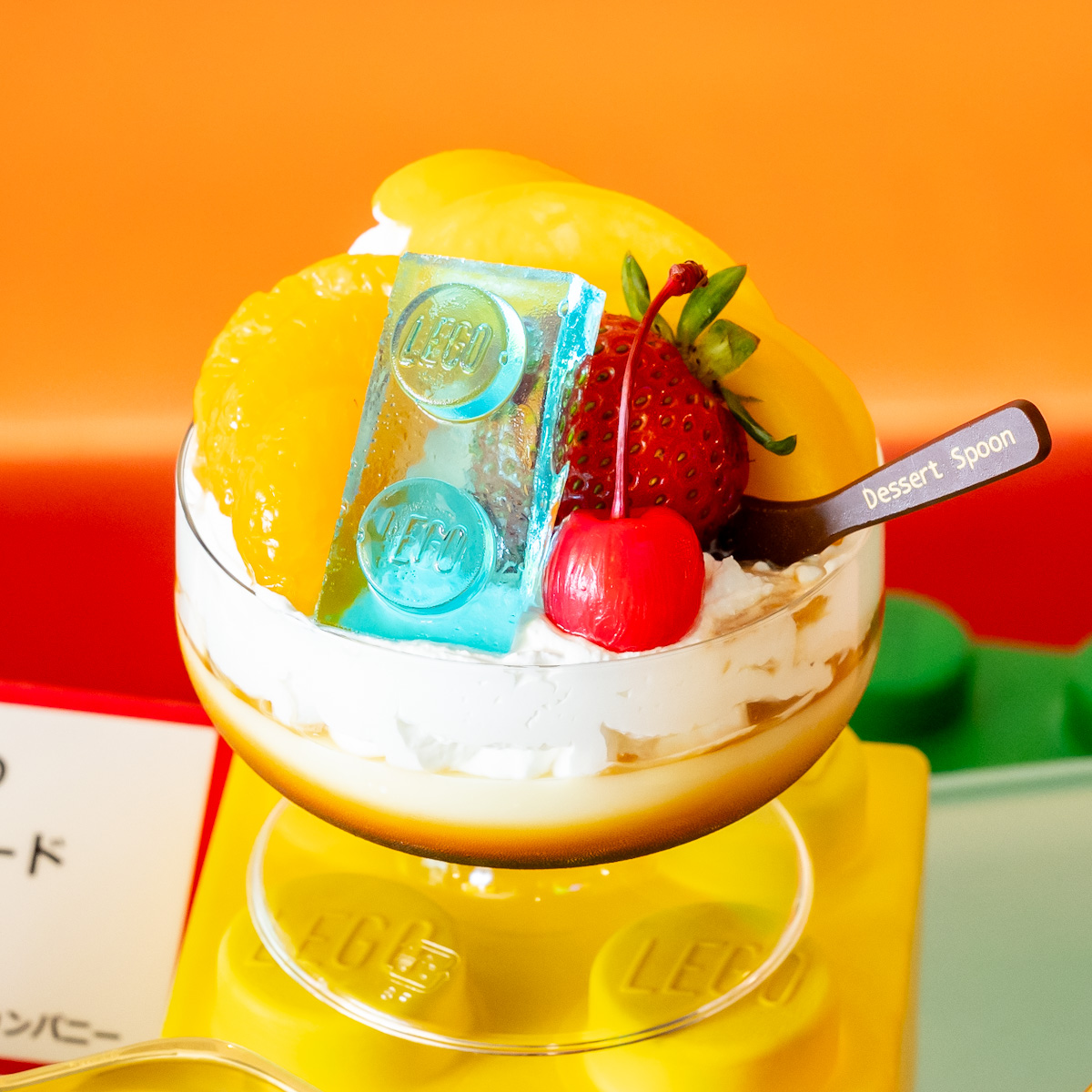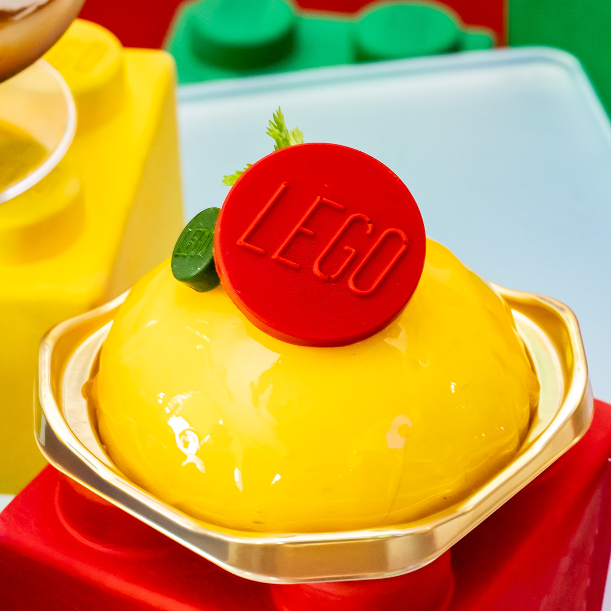 レゴのロゴが入った赤いプレートが印象的なスイーツ。