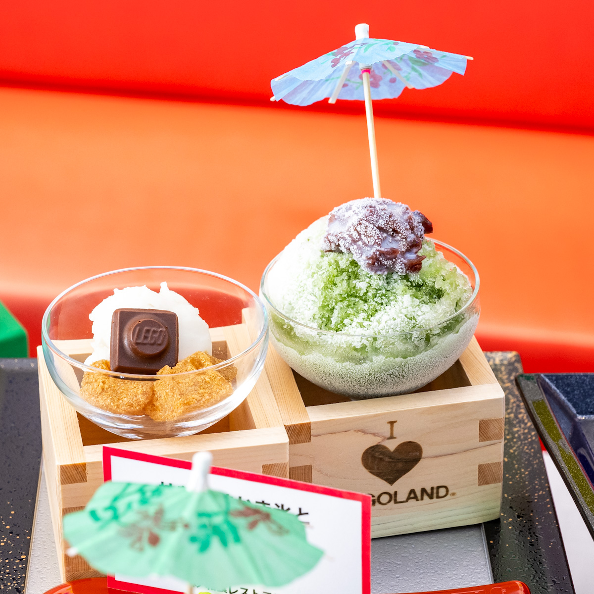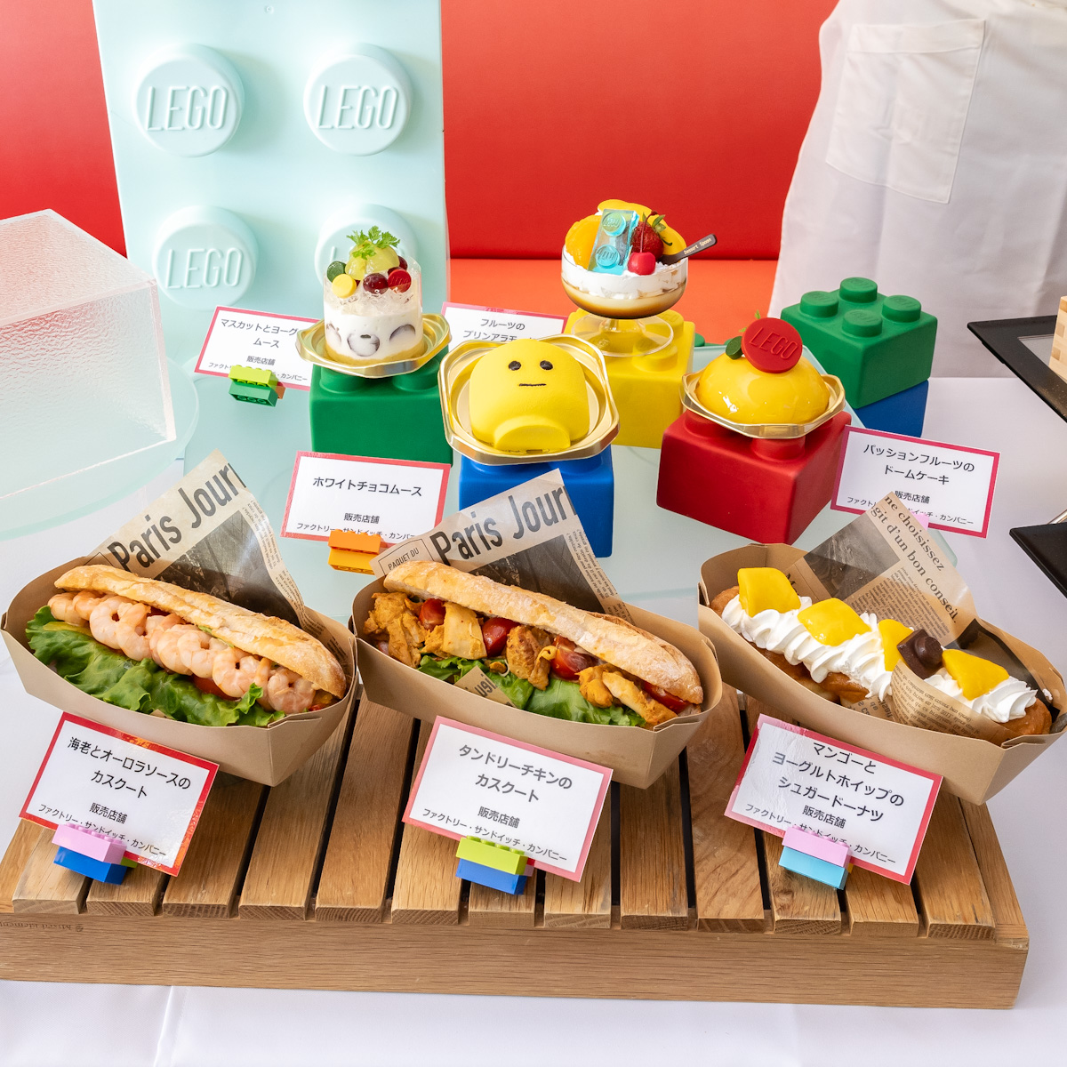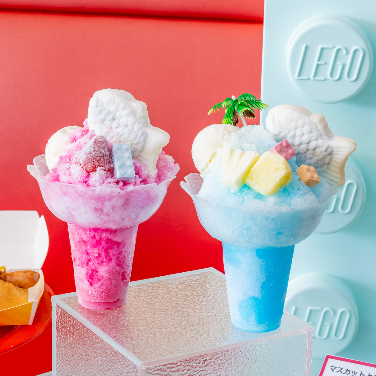 レゴのロゴが入った赤いプレートが印象的なスイーツ。
