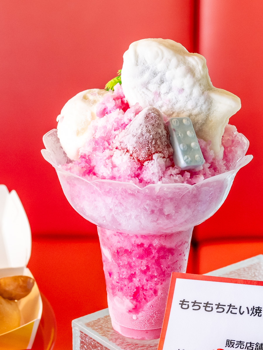 かき氷にもちもちたい焼きをトッピングした「もちもちたい焼きフラッペ ブルーハワイ」