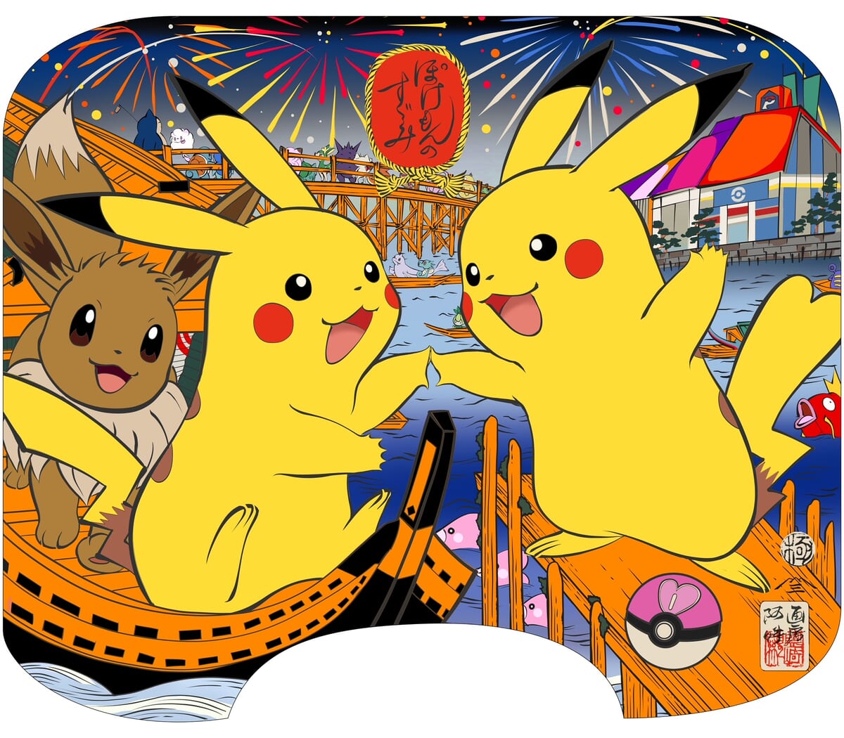 江戸時代を代表する浮世絵師 歌川国芳作の『猫のすずみ』を題材に、現代の浮世絵師・塩崎顕さんがポケモンたちをテーマに「ぽけもんのすずみ」を描き下ろしました。