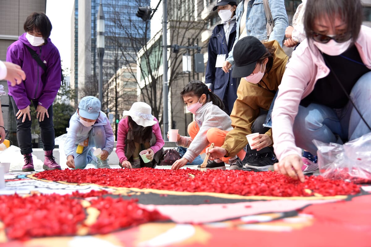 日本の中心、東京行幸通りで世界中から訪れる多くの人々を、歌舞伎絵や子供たちの描いた絵画を花で敷き詰めた絨毯へと招き、東京から再び世界へ大きな感動が伝えられます。