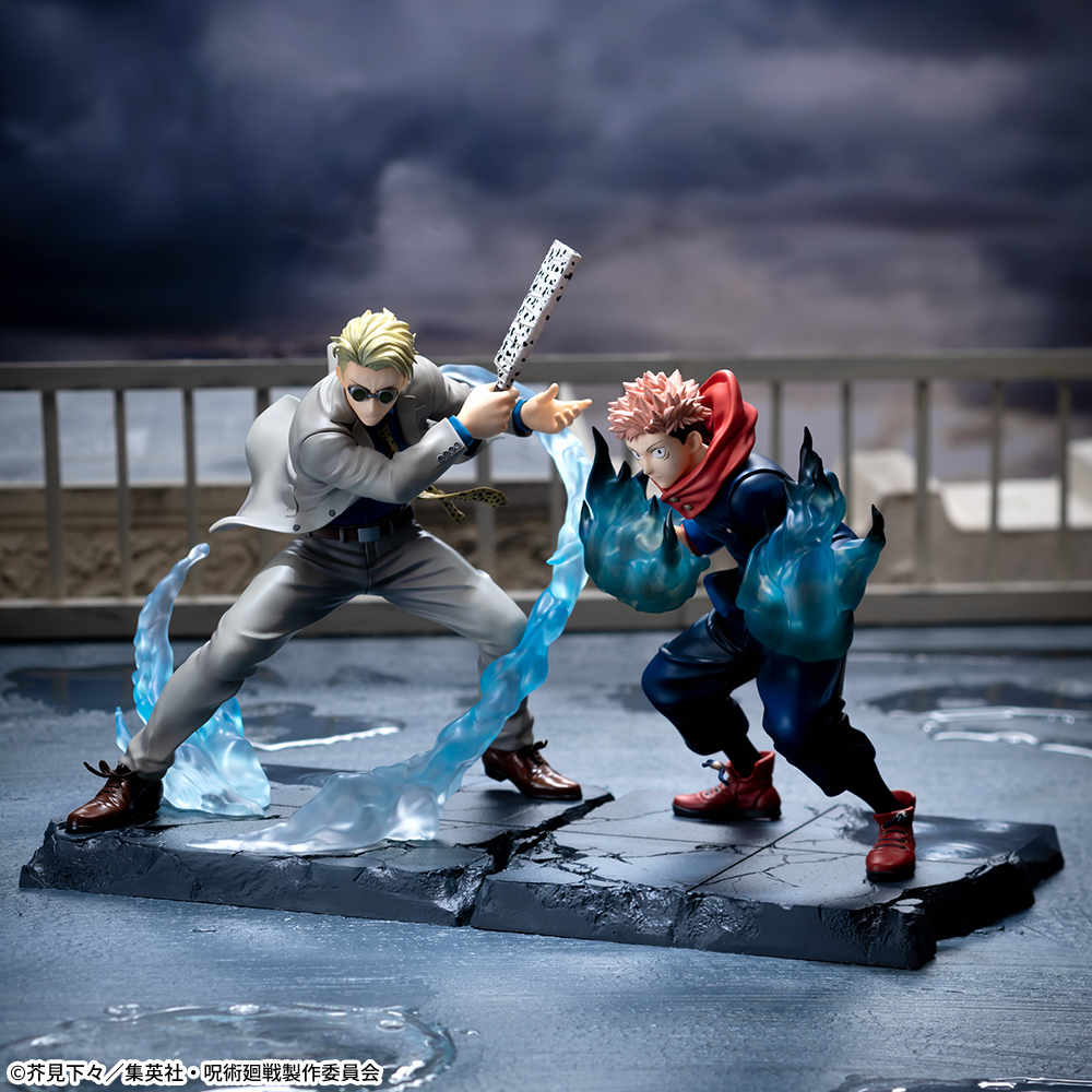 「虎杖悠仁」と「七海建人」の共闘シーンを再現した、迫力あるフィギュア。