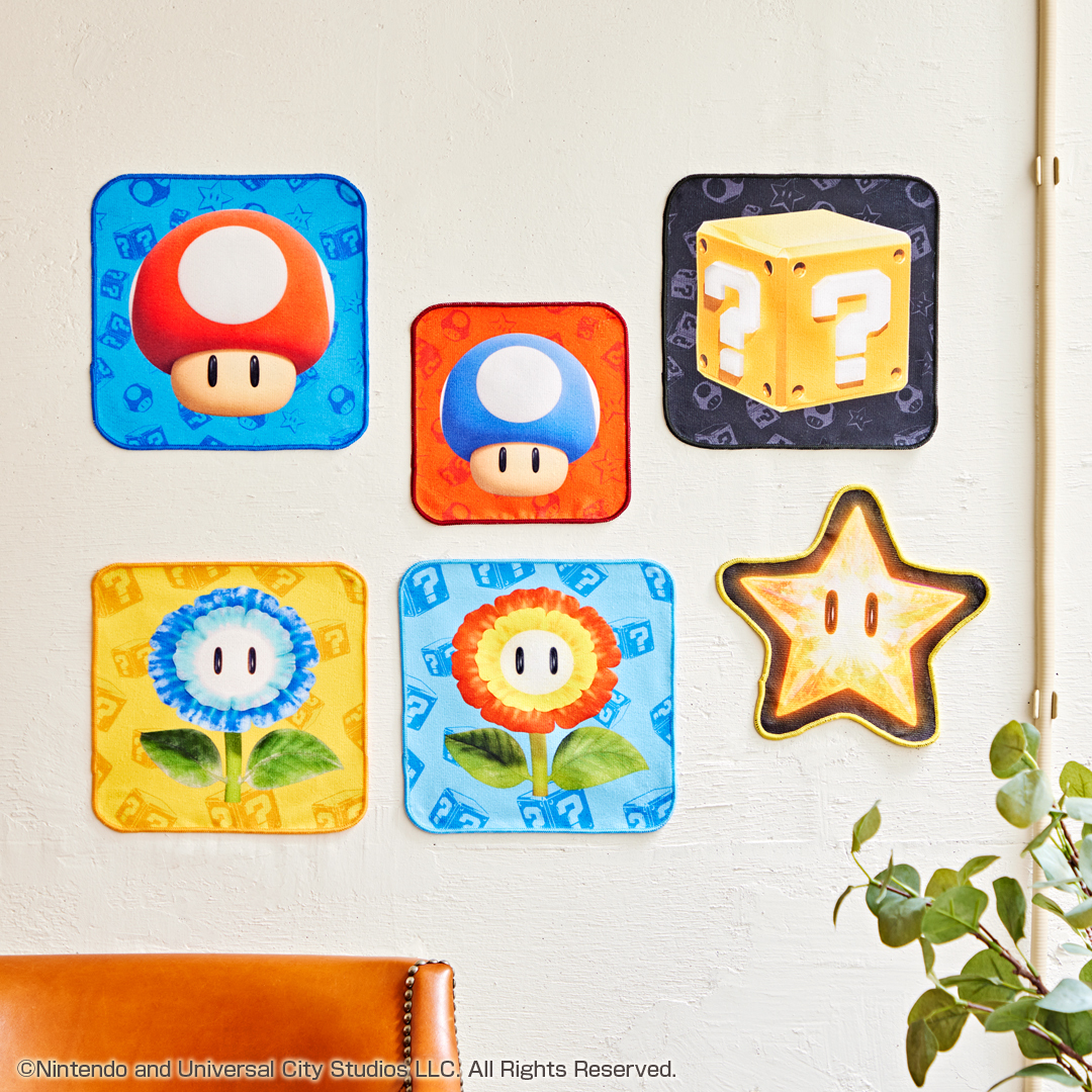 スーパーキノコやファイヤーフラワーのほかにも、ダイカット型のスーパースターのタオルも登場。