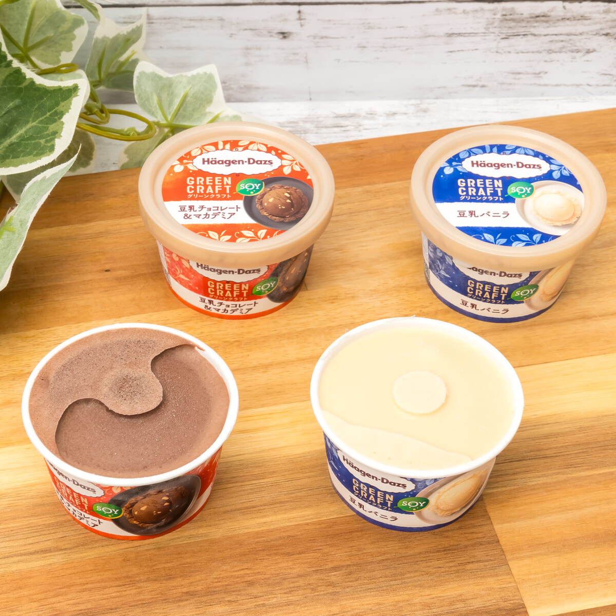 ハーゲンダッツ「GREEN CRAFT ミニカップ 豆乳バニラ/豆乳チョコレート&マカデミア」