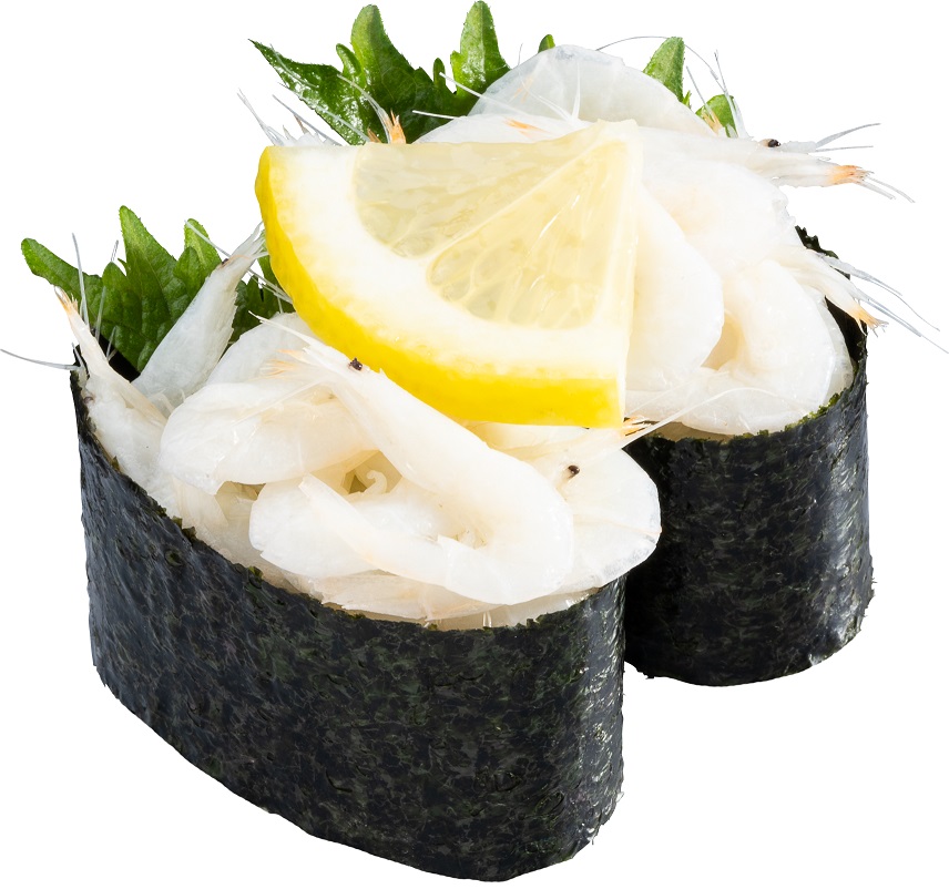 釜揚げ白えびと釜揚げ桜えびを一皿で楽しめる軍艦。