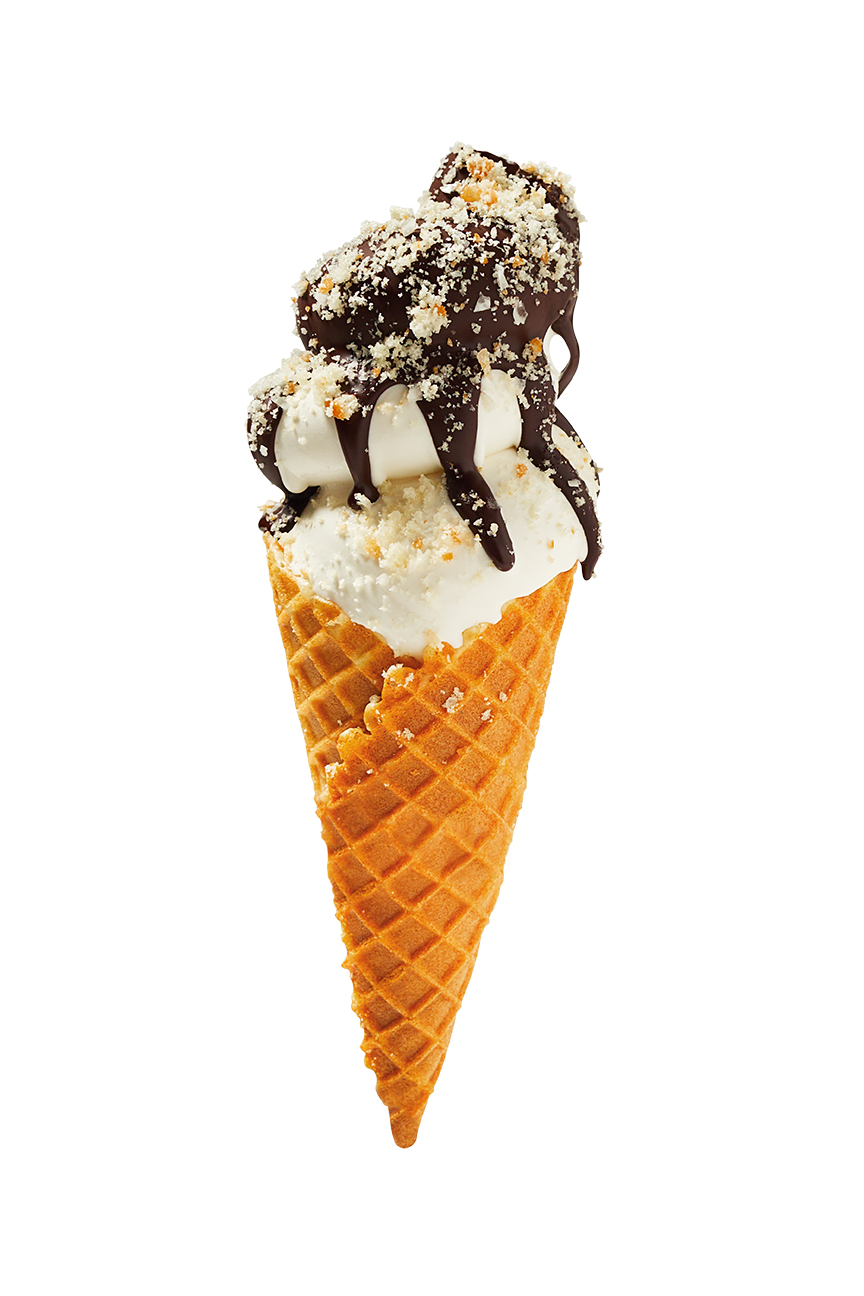 アイスの上でパリッとした口あたりに変わるチョコのソースを使った「オリジナル・グレーズド ソフトクリーム (チョコレート)」