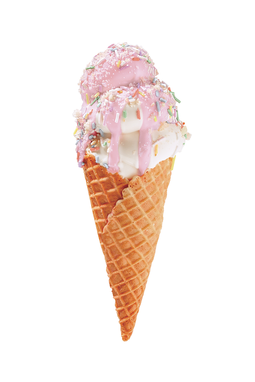 パリッとした口あたりで仕上げたストロベリーでコーティングした「オリジナル・グレーズド ソフトクリーム (ストロベリー スプリンクル)」
