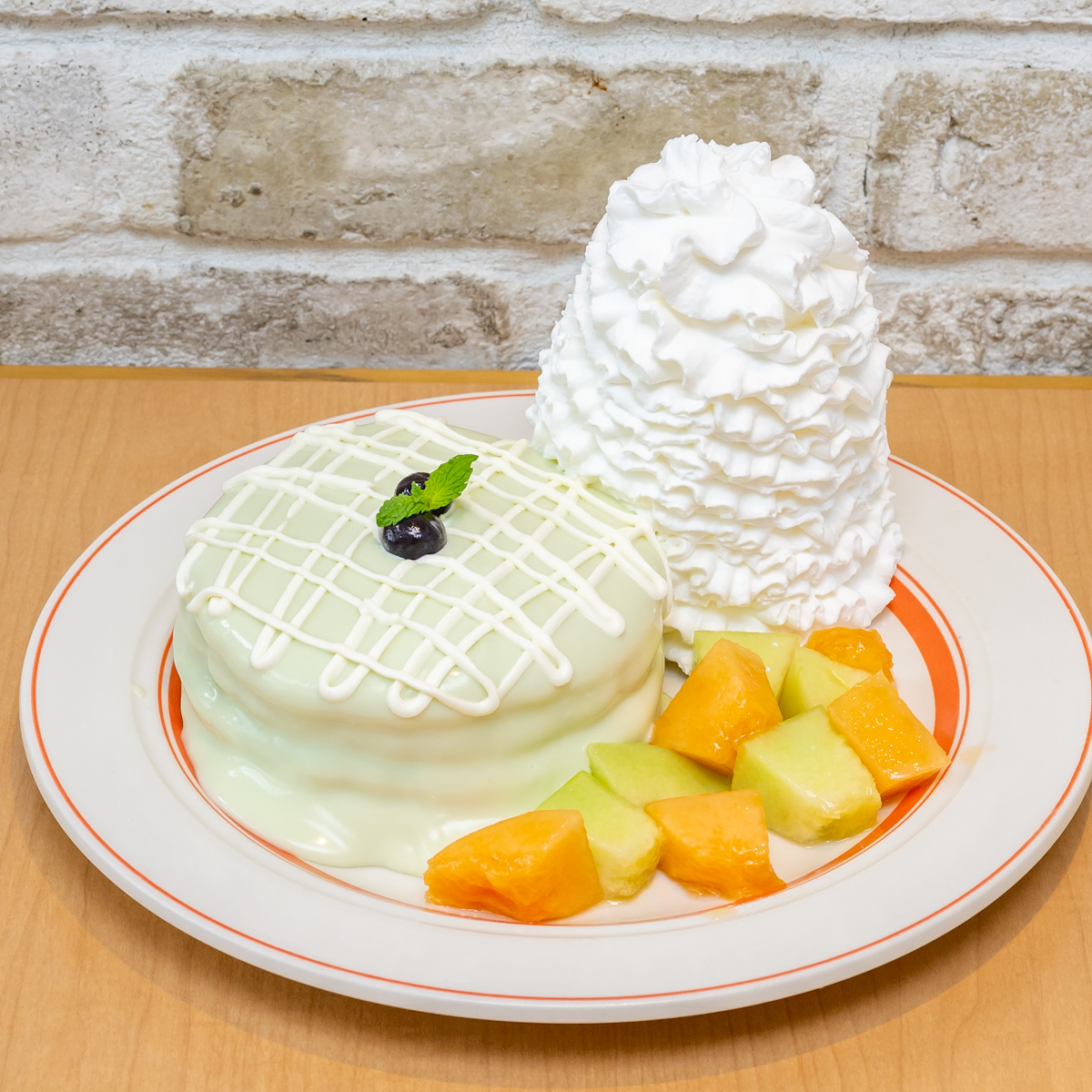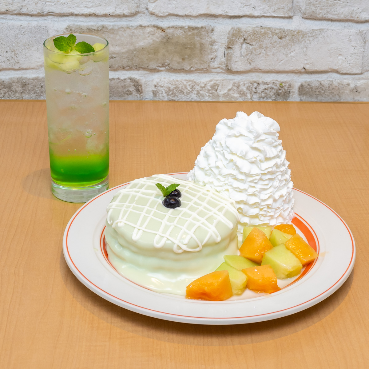 2022年に好評だった旬のメロンを使ったパンケーキが、パワーアップして再登場。