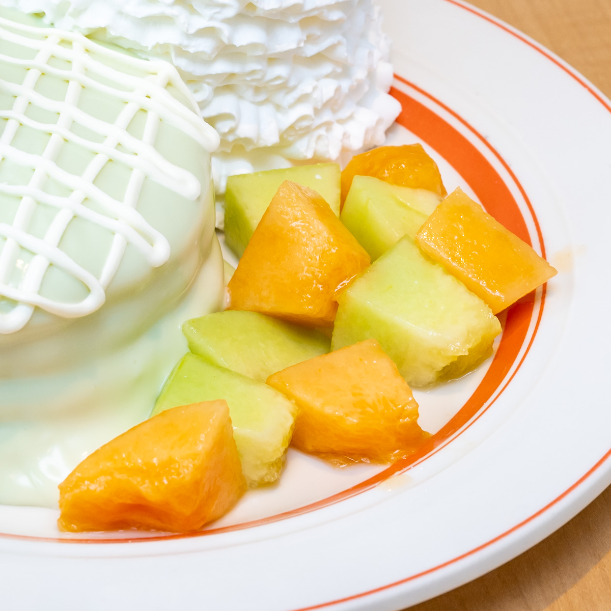 まるでメロンのような、かわいらしい見た目のパンケーキ。