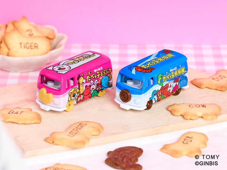 そんな「ドリームトミカ」に、人気お菓子「たべっ子どうぶつ」と「たべっ子水族館」のトミカが登場!