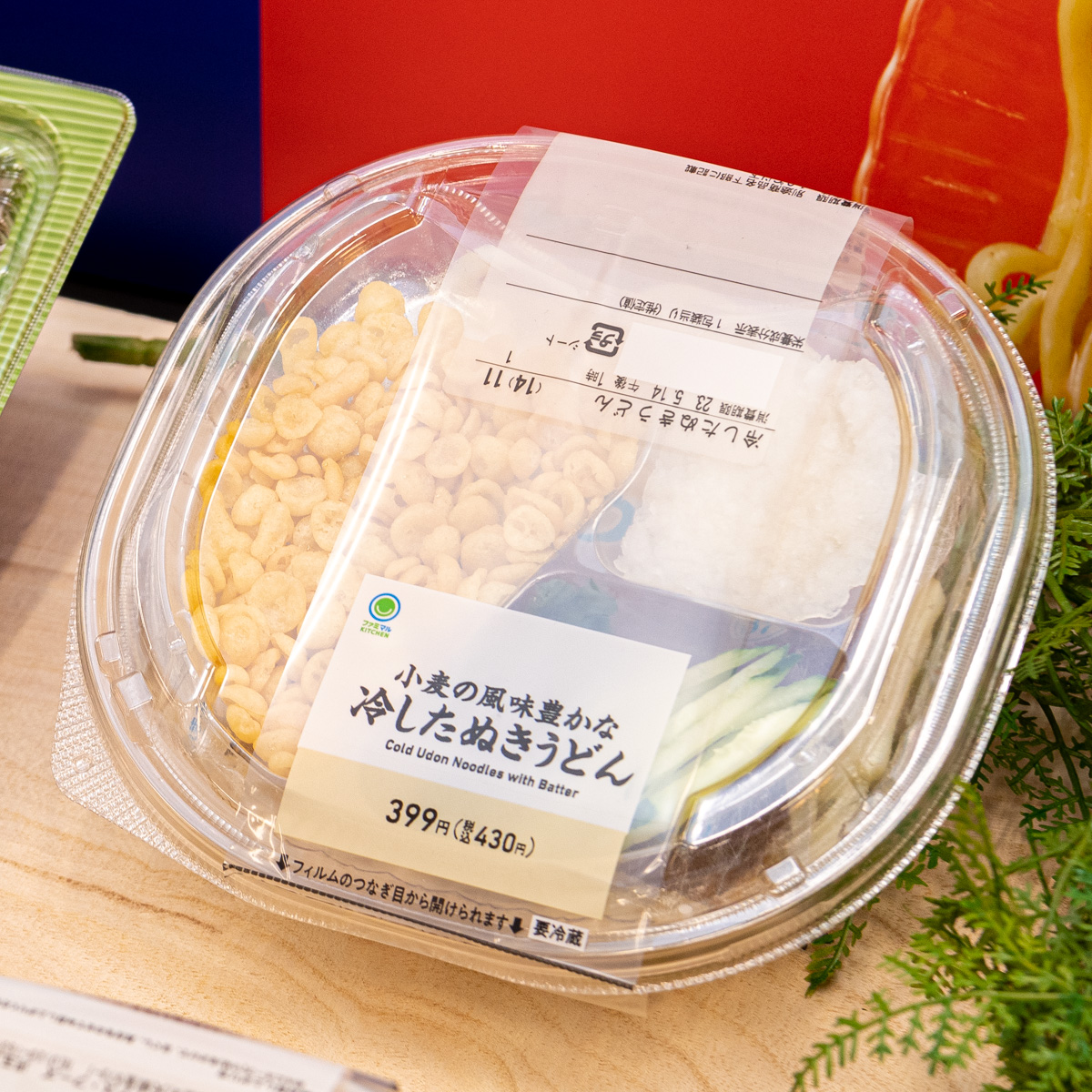 つるみがあり、すすりやすい食感が特徴の「小麦の風味豊かな 冷したぬきうどん(冷しぶっかけうどん)」
