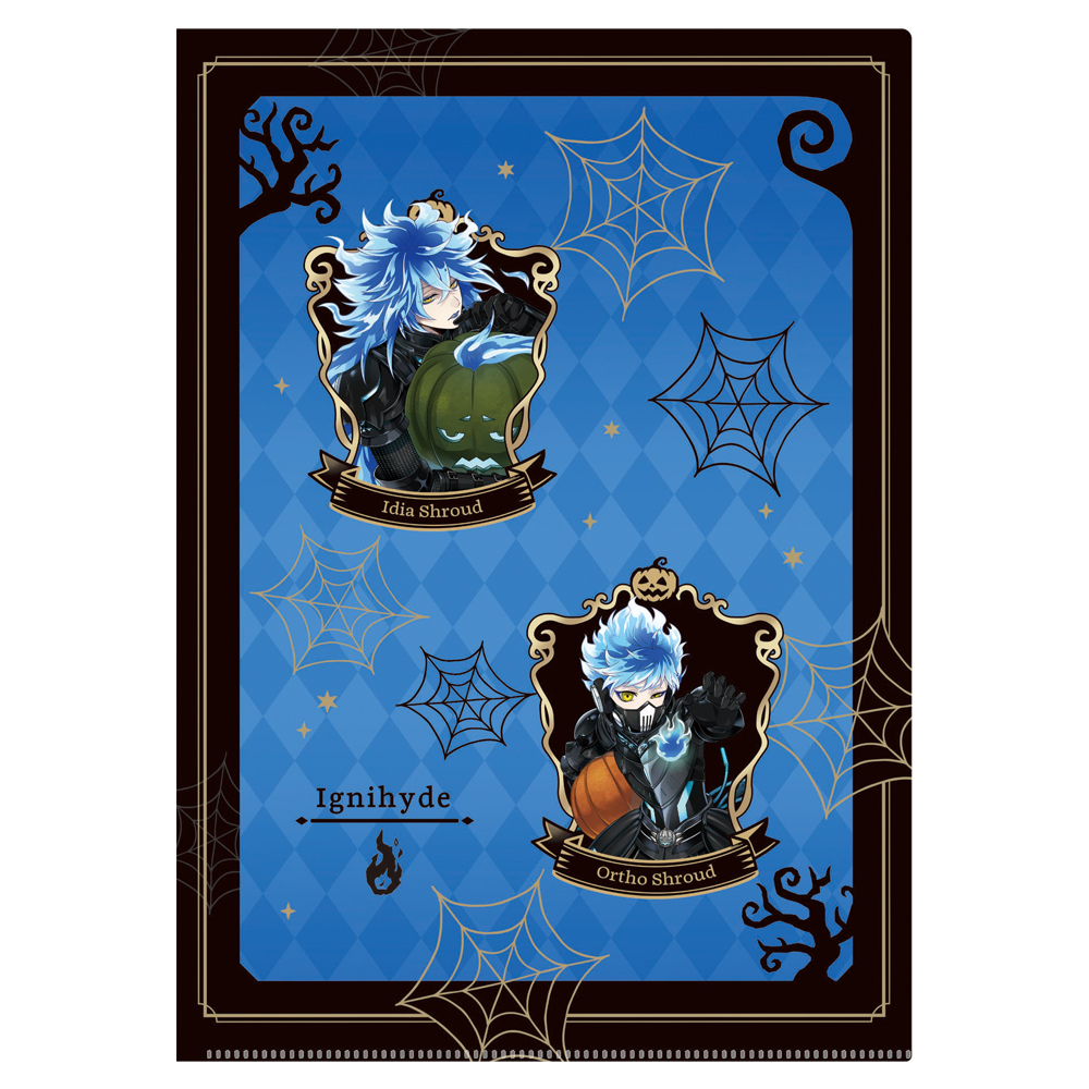 パンプキン騎士をイメージした仮装の「イデア・シュラウド」と「オルト・シュラウド」デザインのクリアファイル。