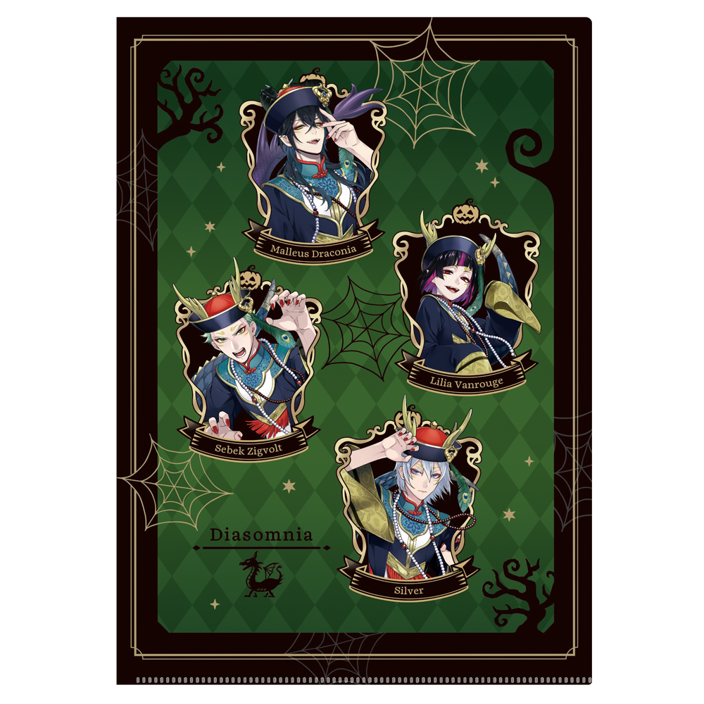 龍をモチーフにしたスケアリー・ドレスを身に纏う「ディアソムニア寮」4寮生のクリアファイル。