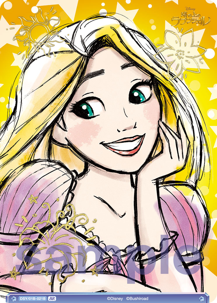 『塔の上のラプンツェル』のディズニープリンセス「ラプンツェル」は、魔法の花や紋章など物語のキーになるモチーフを箔押しにしたカードも。