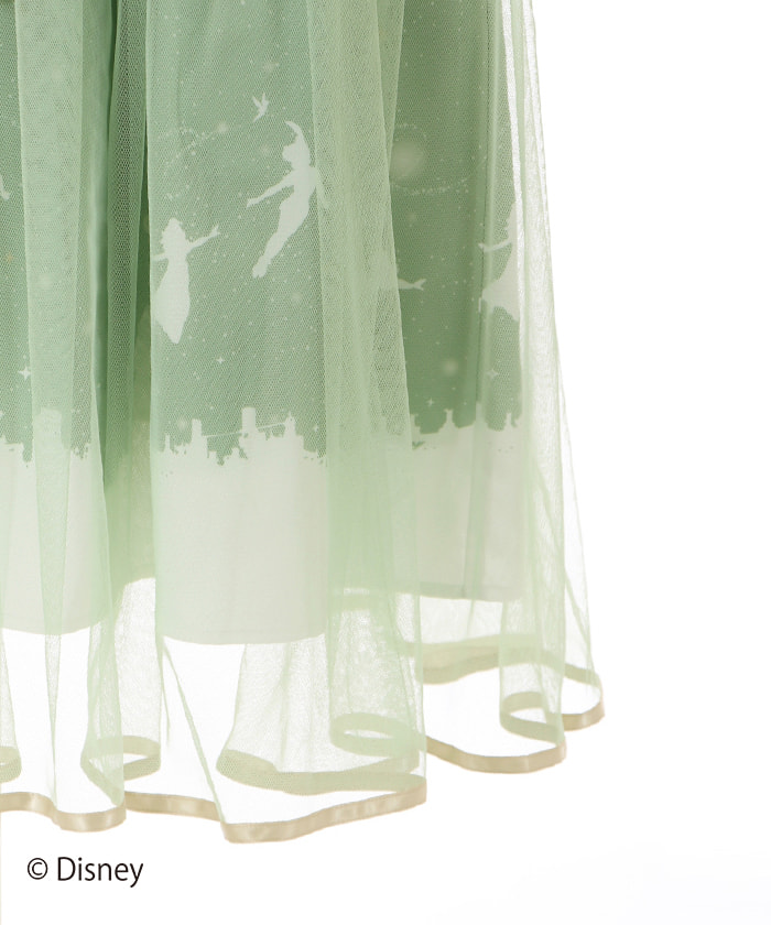 「ピーター・パン」を先頭に「ティンカー・ベル」「ウェンディ」「ジョン」「マイケル」がネバーランドに向かって、ロンドンの空を飛んでいくシーンを柄に落とし込んだスカートです。