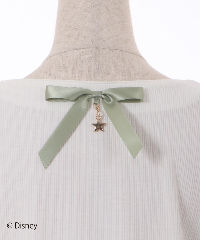 後ろ衿ぐりのサテンリボンからは、星チャームが揺れるデザインに仕上げられています。
