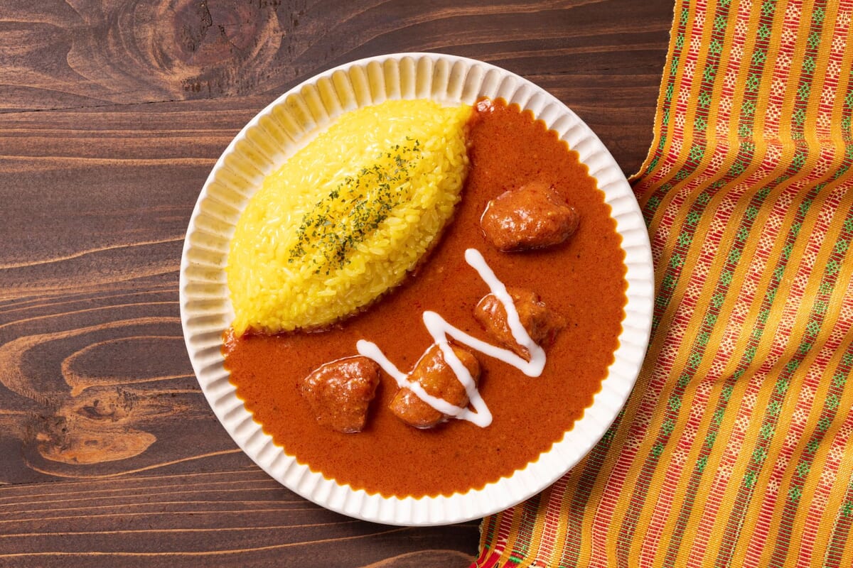 スパイスの風味豊かな、人気カレー店監修のバターチキンカレー。