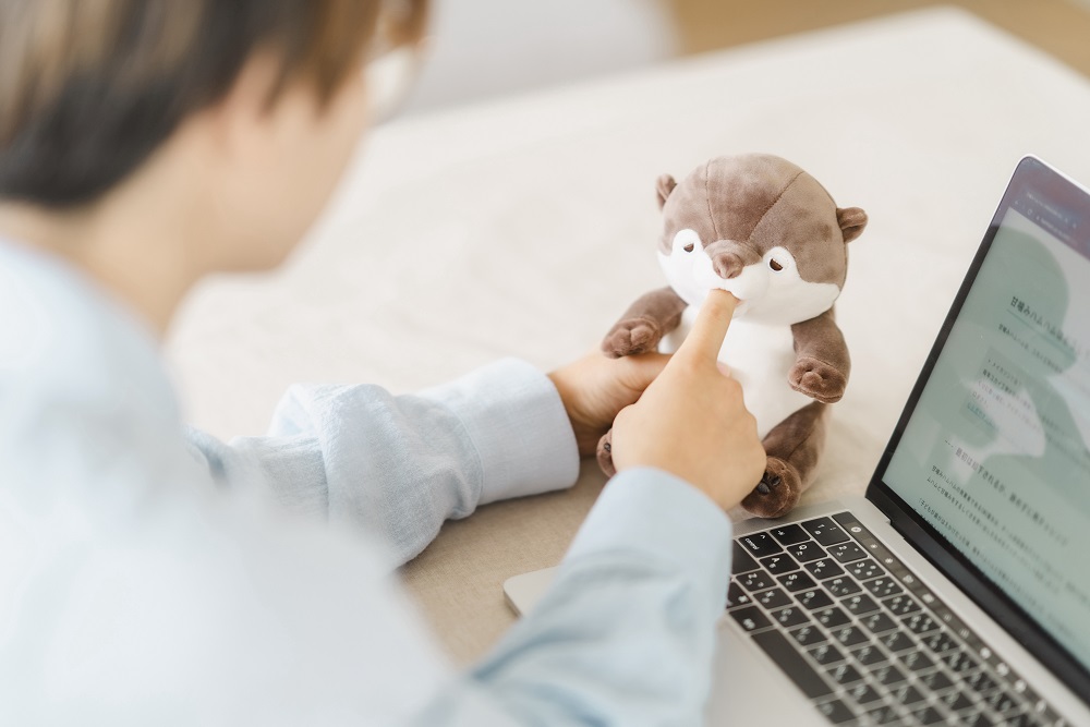 今にも眠ってしまいそうな、眠たげな表情をしたカワウソの「くるり」
