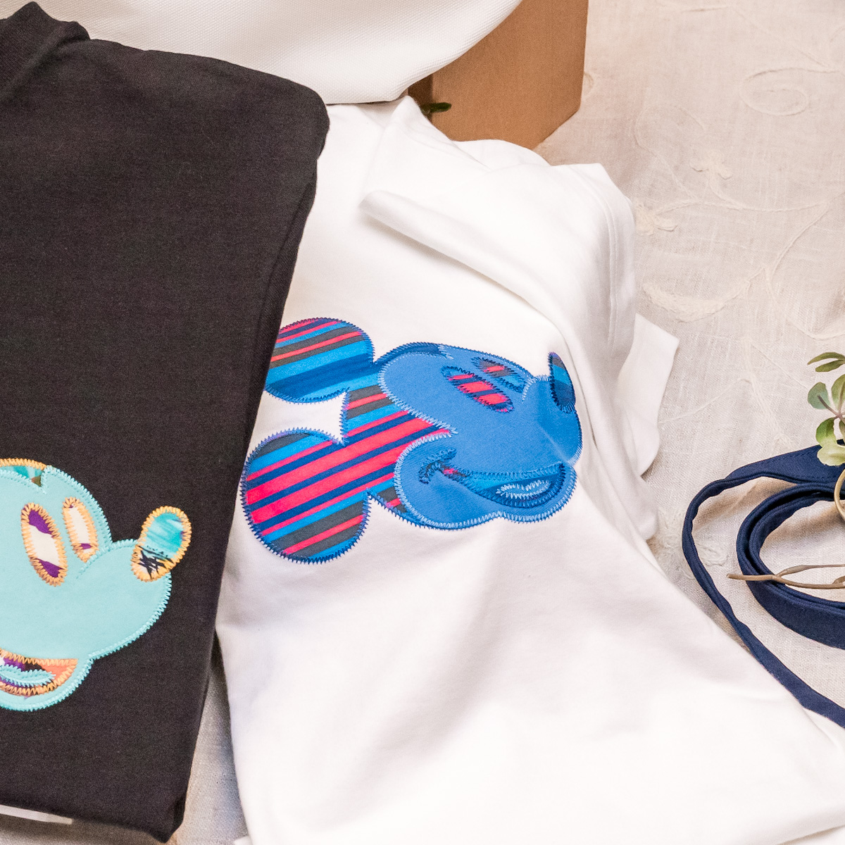 東京ディズニーシー/メディテレーニアンハーバー「ゴンドリエスナック」の使い終わったコスチュームの生地をミッキーマウスのアップリケに使用することで、東京ディズニーリゾートらしい商品が誕生。