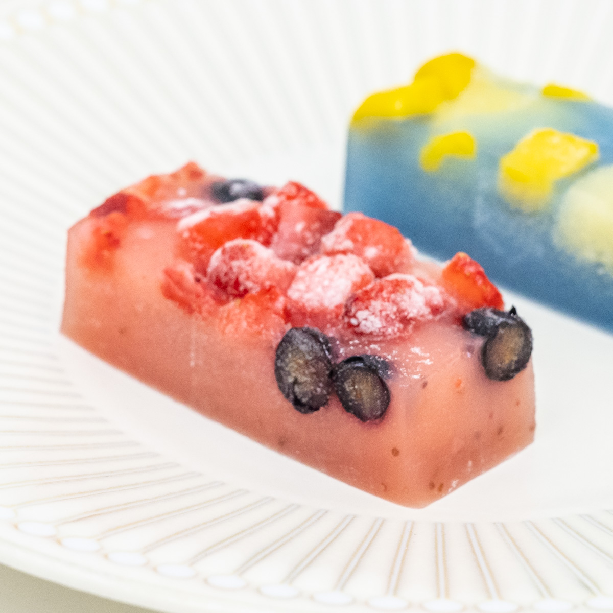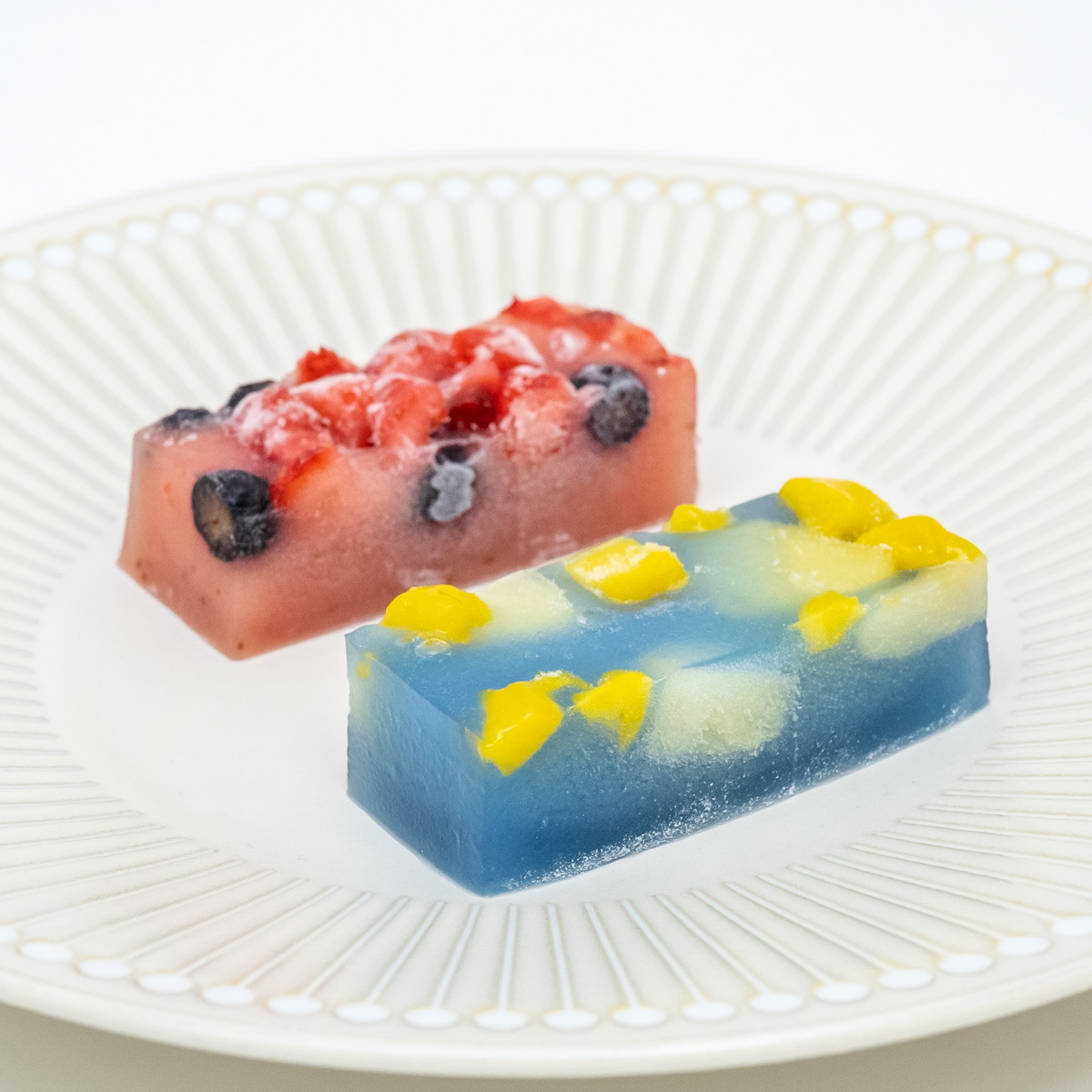かわいらしい見た目と楽しい食感の、葛を使った溶けないアイス。
