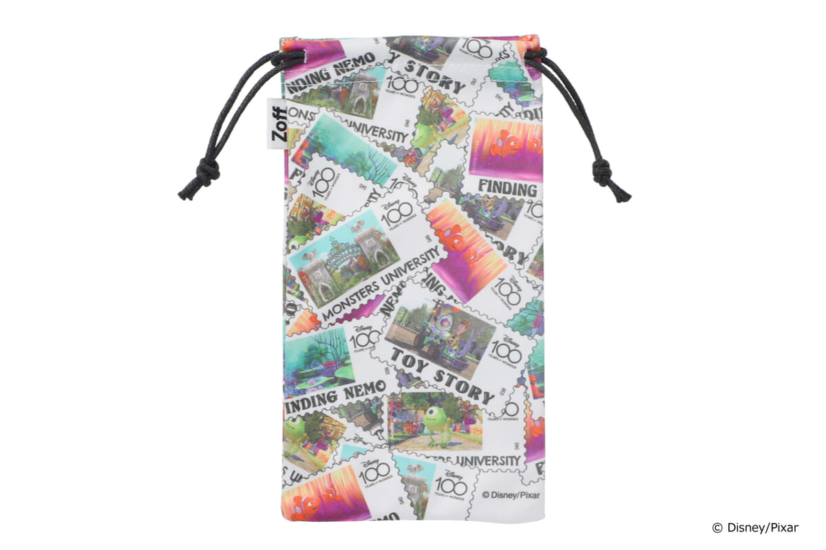 ディズニー&ピクサーのアニメーション作品のアートを散りばめた、メガネケースと巾着型メガネ拭きのセット。