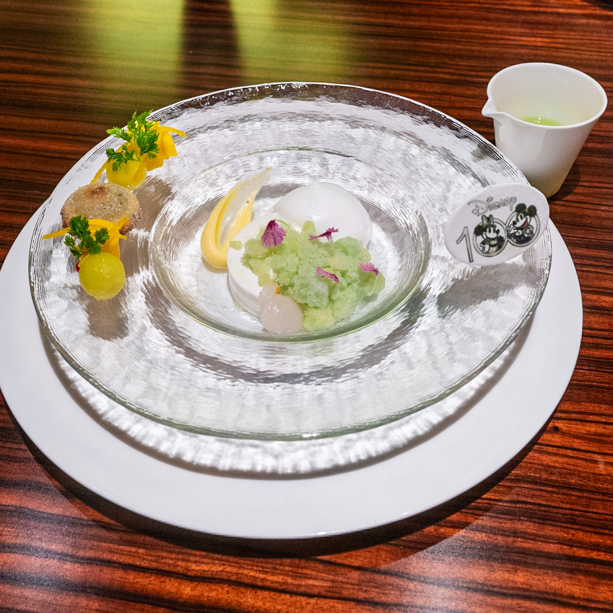 プラチナカラーの「ディズニー100」ロゴもあしらわれた、特別感あふれるコースです。
