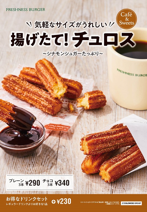 フレッシュネスバーガーから、もちふわ・さっくり食感の「揚げたてチュロス」が登場!
