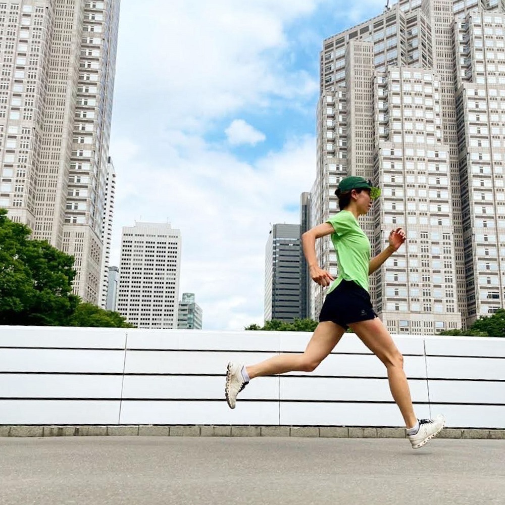 恵比寿の街を約5-6kmでゆっくりとランニングしたあと、チューニングポールを使ってランニング前後のコンディショニング⽅法をレクチャー。