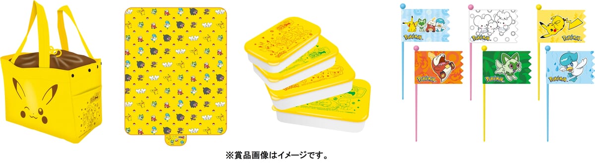 ピカチュウのお顔がかわいいバッグや、ポケモンがたくさん描かれた楽しいレジャーシート、ランチタイムもポケモンたちと過ごせるランチボックスセットやピックがラインナップされています。