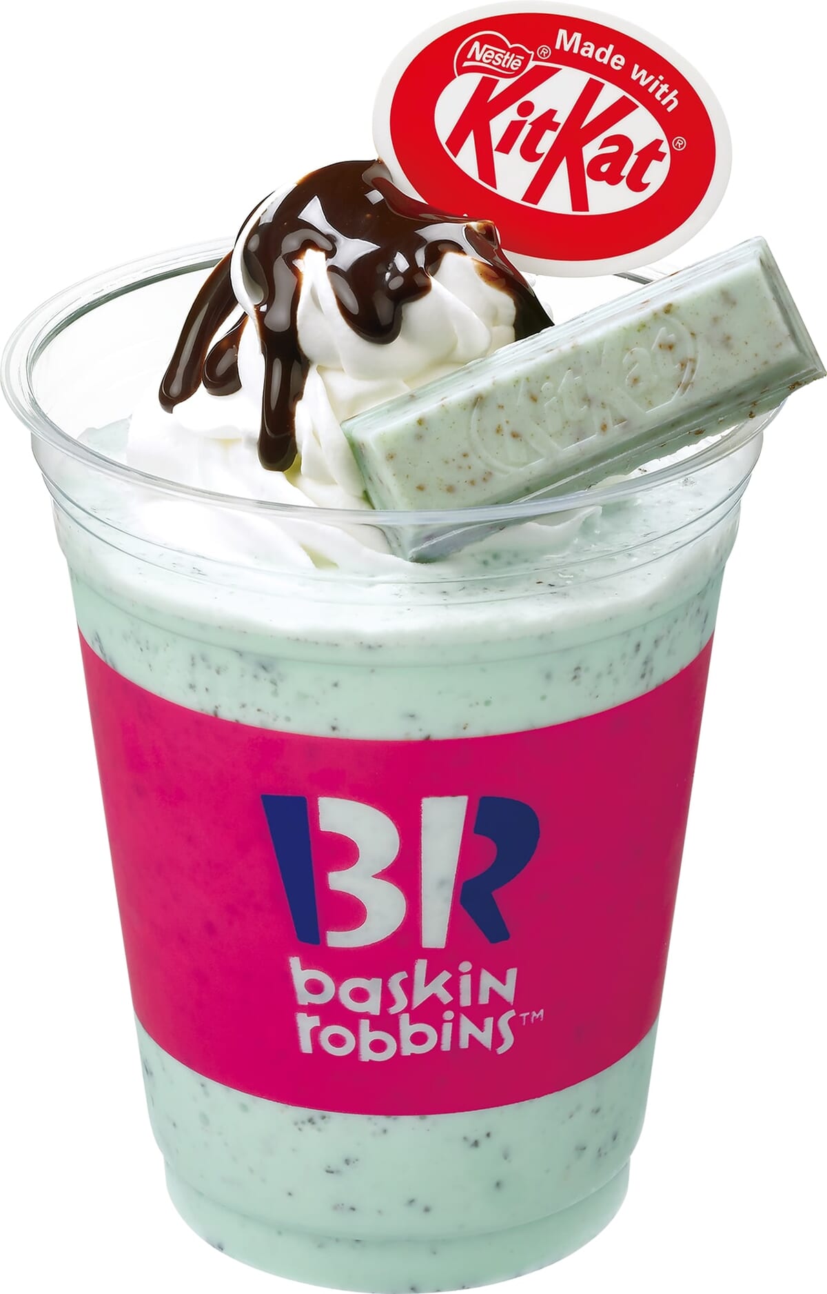 サーティワンのチョコレートミントと「キットカット ミニ チョコレートミントアイスクリーム風味」の2つのチョコレートミントがコラボした、爽やかなドリンクです。