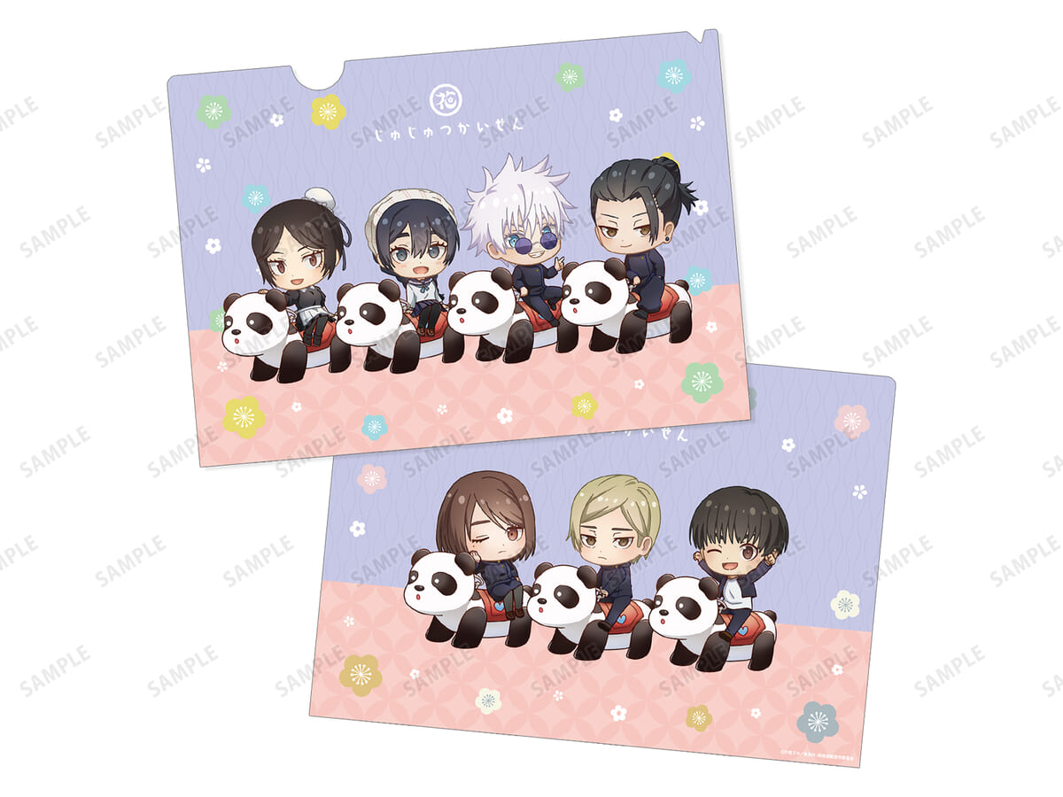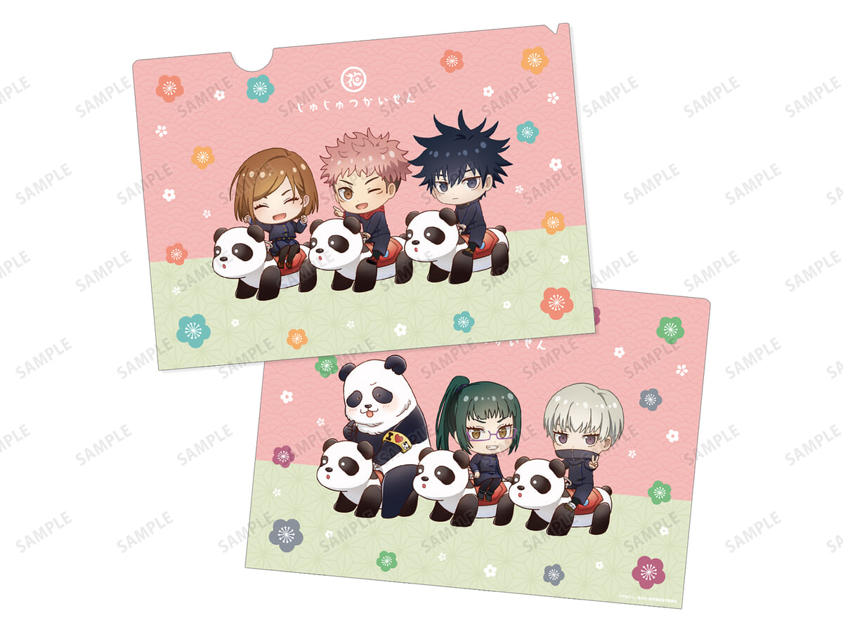 「虎杖悠仁」「伏黒恵」などのちびキャラデザインのクリアファイル。