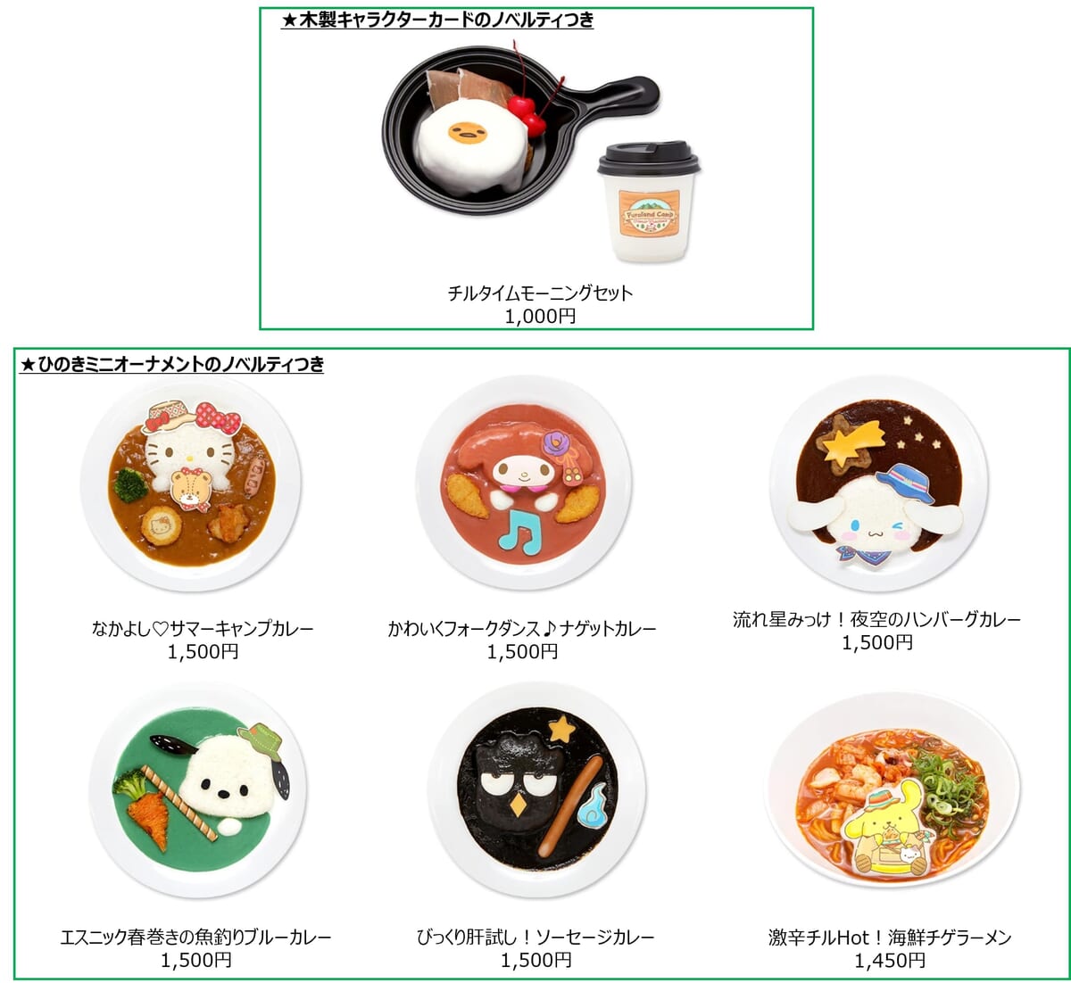 ハローキティの「なかよし♡サマーキャンプカレー」や「エスニック春巻きの魚釣りブルーカレー」など、見た目も味も大満足なメニューです。