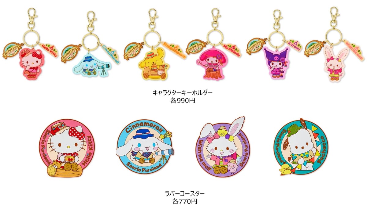 カラフルなハットやバンダナなどを身に着け、キャンプを楽しむキャラクターたちの姿が様々なグッズになって登場!