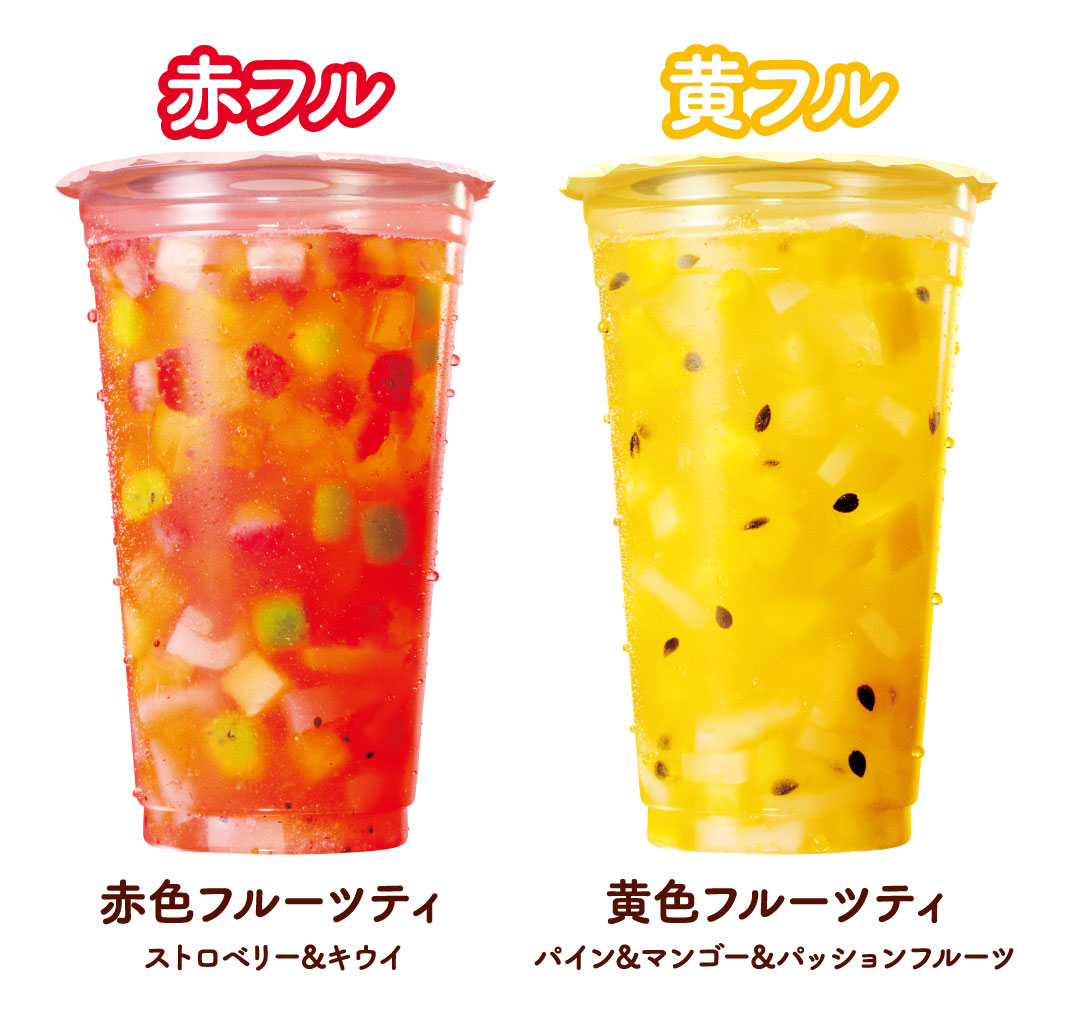 ミスタードーナツ「赤色フルーツティ/黄色フルーツティ」