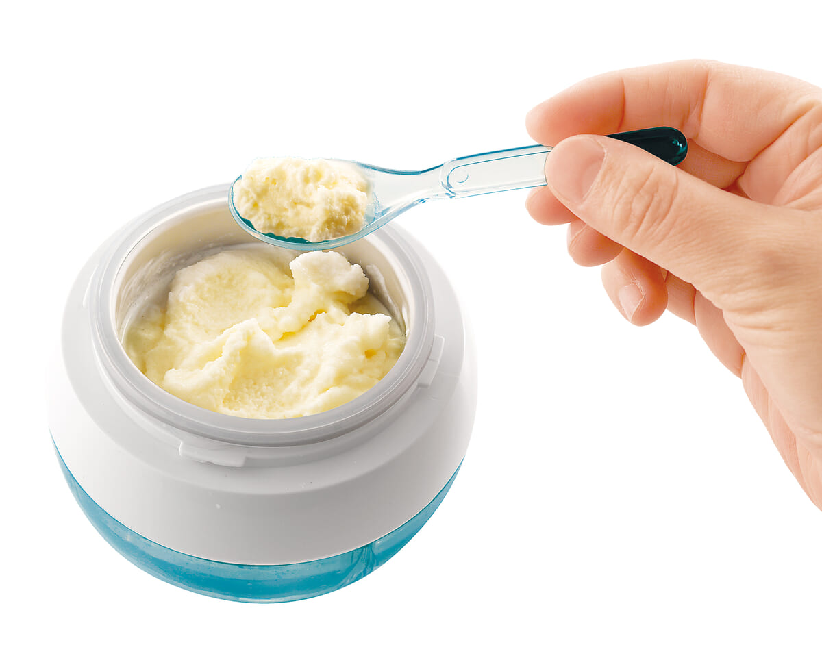 本体キャップと中フタを取り外し付属のスプーンでアイスをかき混ぜれば完成です☆