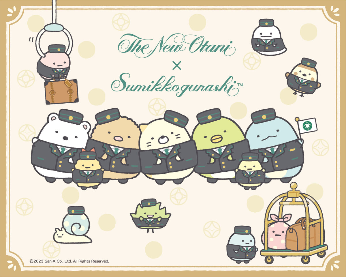 「ホテルニューオータニ(東京)」を背景に、ホテルマンになった「すみっコ」たちと「みにっコ」たちが大集合!