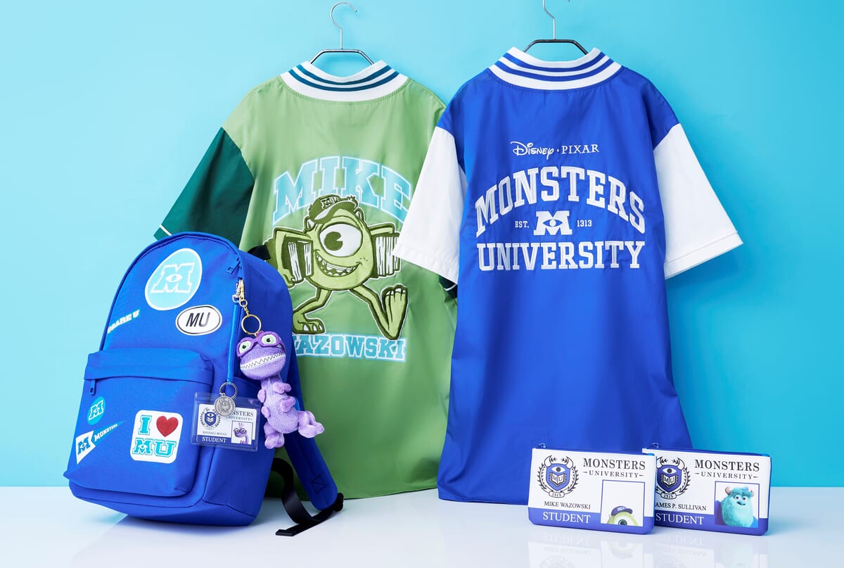 作中で「マイク・ワゾウスキ」や「ジェームズ・P・サリバン(サリー)」たちが通う「モンスターズ・ユニバーシティ」のモチーフを散りばめたグッズがラインナップされています。