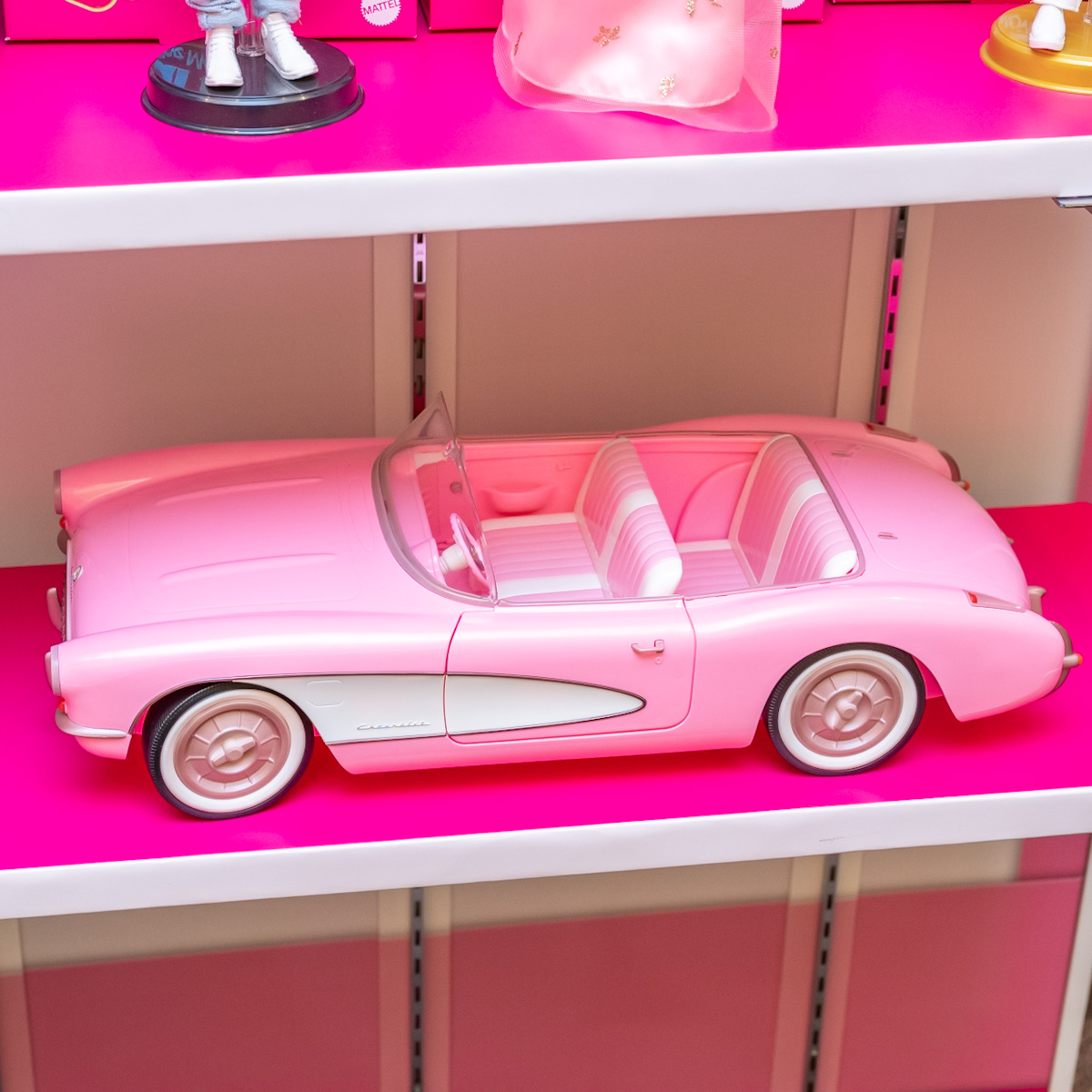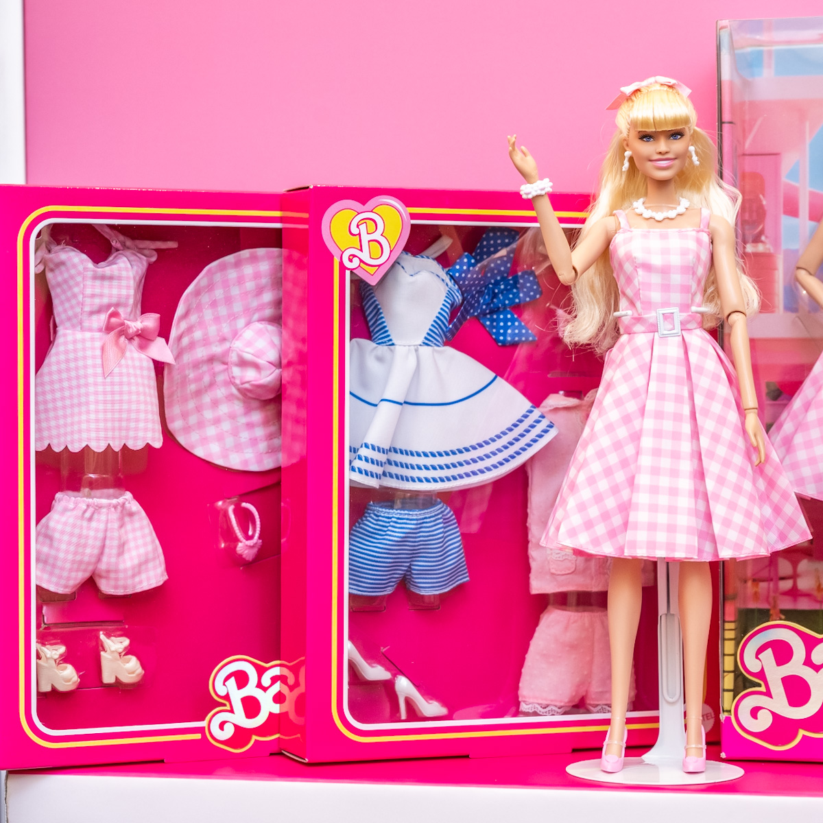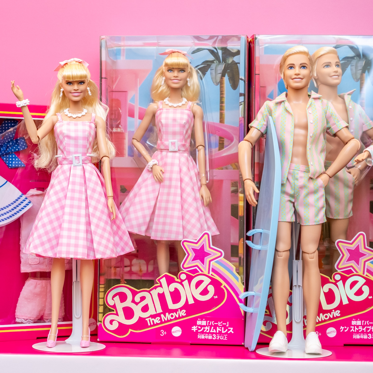 ドールのほかにも、劇中の印象的なファッションのセット、アイコニックなピンクのコンバーチブルなどが数量限定で販売されます。
