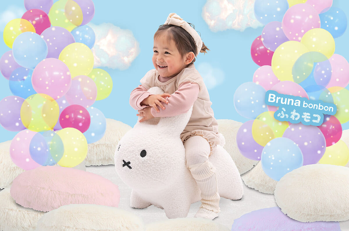 「ミッフィー」で知られるディック・ブルーナさんが描く絵本の世界のうさぎをモチーフにしたかわいいバルーン遊具ブルーナボンボンから、newモデルが登場!