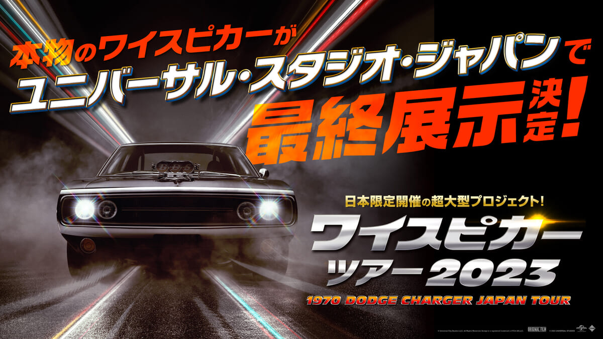 最新作の公開を記念して、日本各地で大盛況開催中の「ワイスピカーツアー 2023 1970 DODGE CHARGER JAPAN TOUR」のグランドフィナーレとして、数多くのハリウッド超大作をテーマとした世界最高クオリティのエンターテインメントを体験できるユニバーサル・スタジオ・ジャパンで、特別追加展示が行われます。