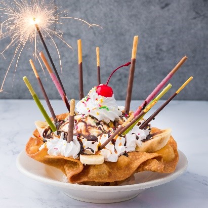 「POCKY ON THE ROCKS @TGI FRIDAYS」の開催期間中、オリジナルのデザートメニュー「HAPPINESS! POCKY SUNDAE(ハピネス!ポッキーサンデー)」を全12店舗で販売。