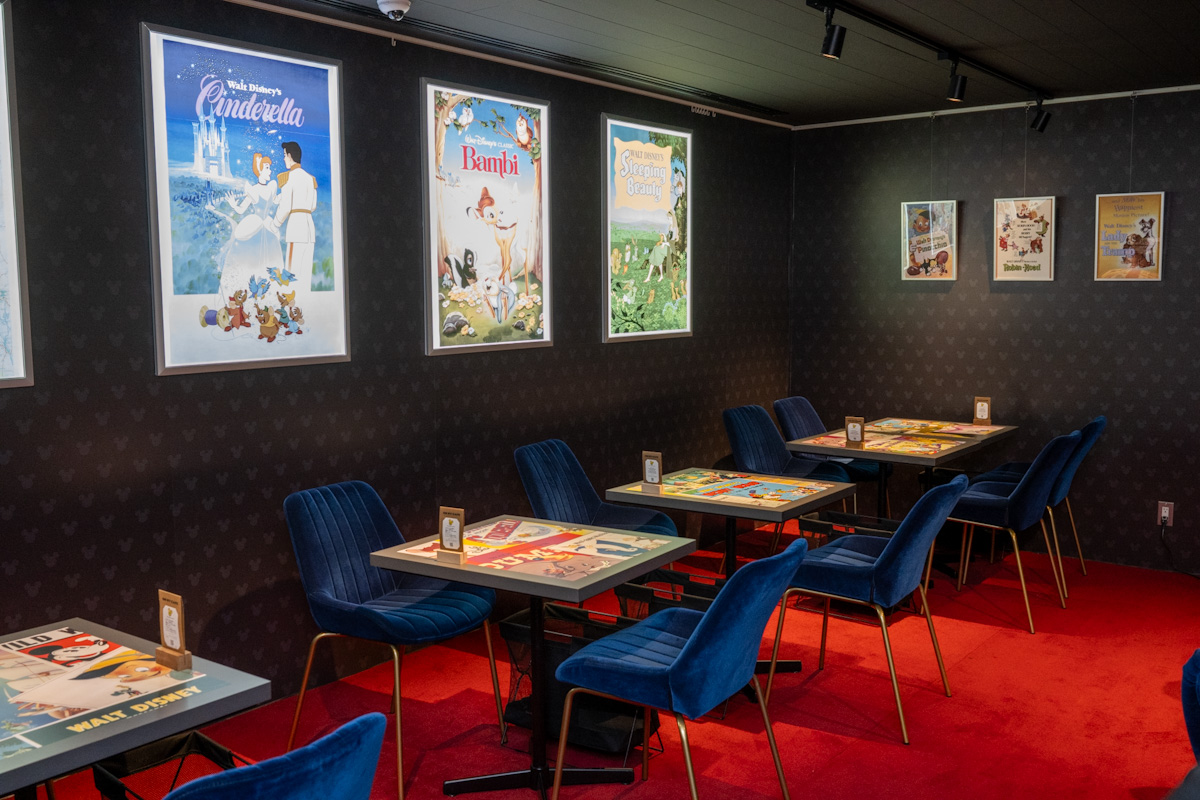 ディズニー・アニメーションの数々の名作の中から厳選した「名作アートのポスター」を採用した店内はカラフルに彩られて鮮やかな雰囲気に変身します。