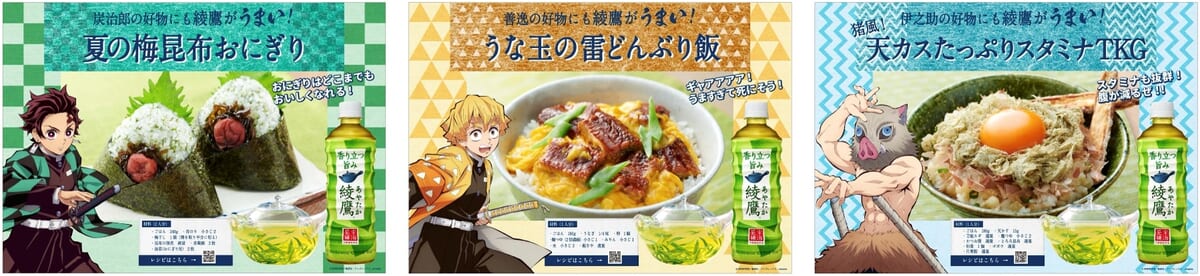 さらに、暑い夏を乗り切るために、「綾鷹」と「鬼滅の刃」と一緒にごはんを楽しめる「夏ごはんレシピ」も登場。
