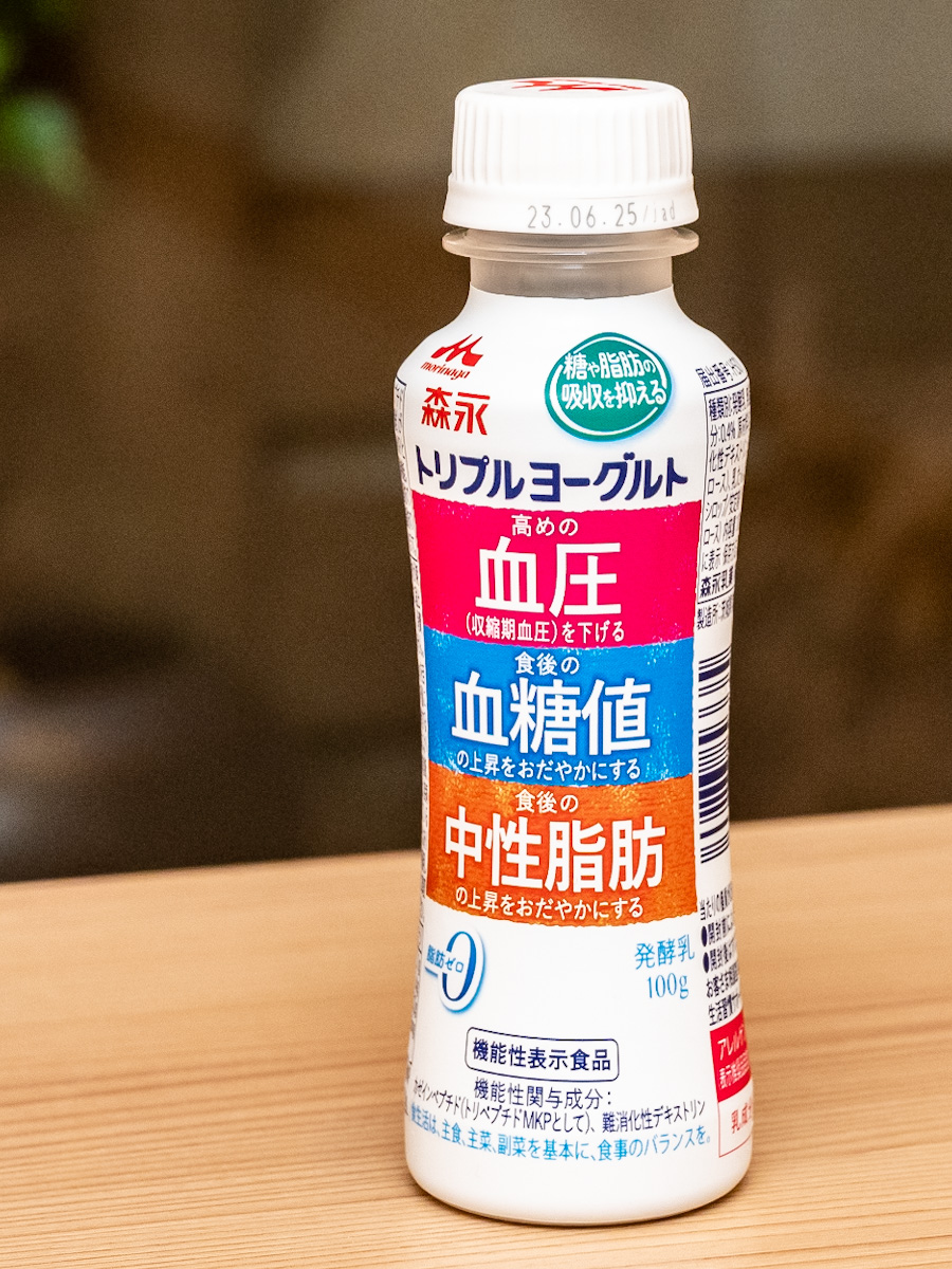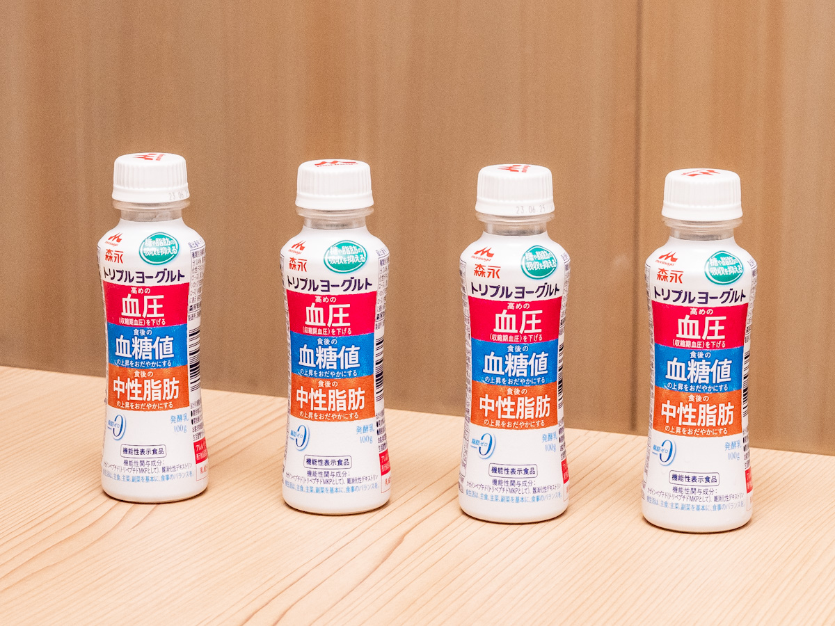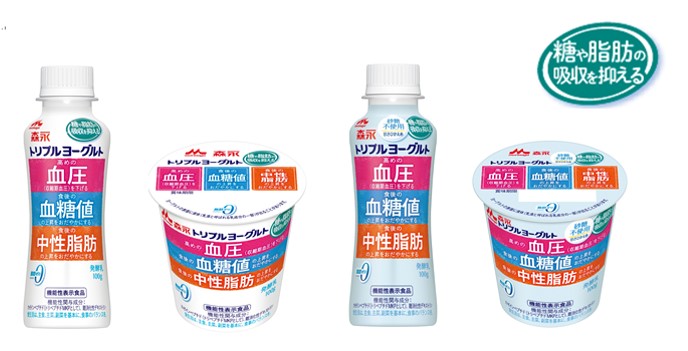 「血圧 、血糖値、中性脂肪」の3つの機能性に、「糖や脂肪の吸収を抑える」機能が追加してリニューアルされた「森永トリプルヨーグルト」