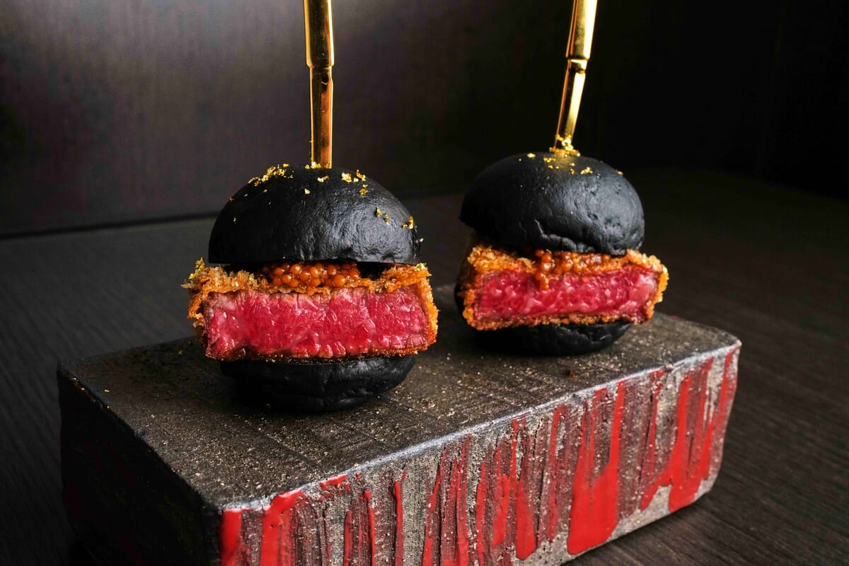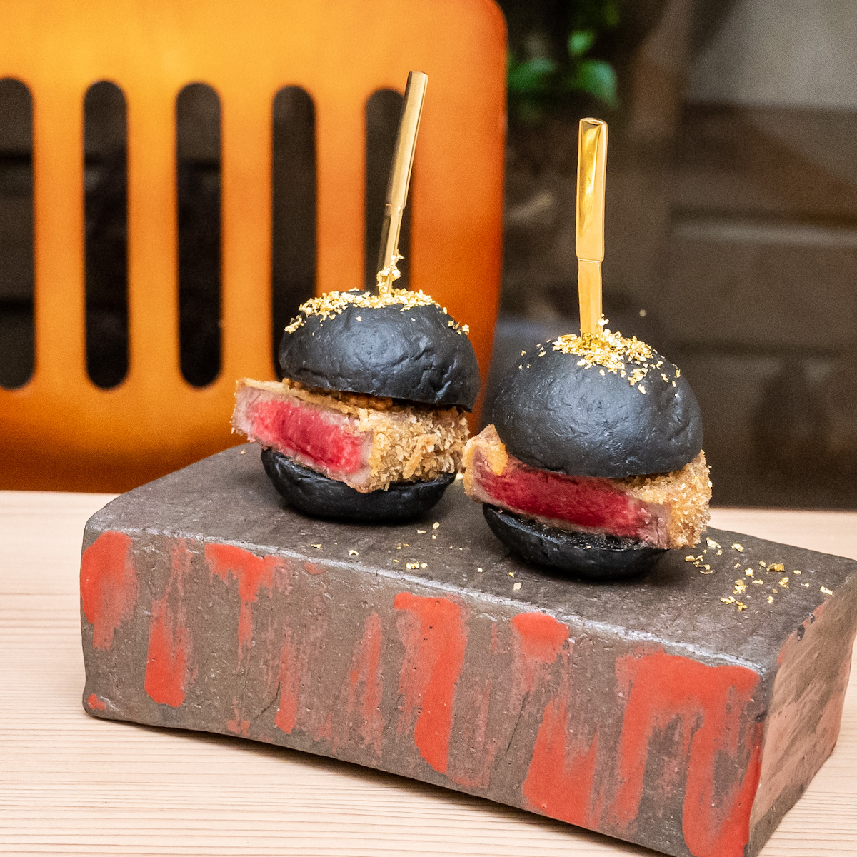 「富士門」の看板メニュー「極上ヒレカツバーガー」に金箔をふりかけた、視覚も甘やかす特別メニュー!