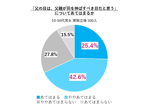 また、家族側の約6割が「父の日くらい羽を伸ばしてほしい」と思っているということも明らかに。