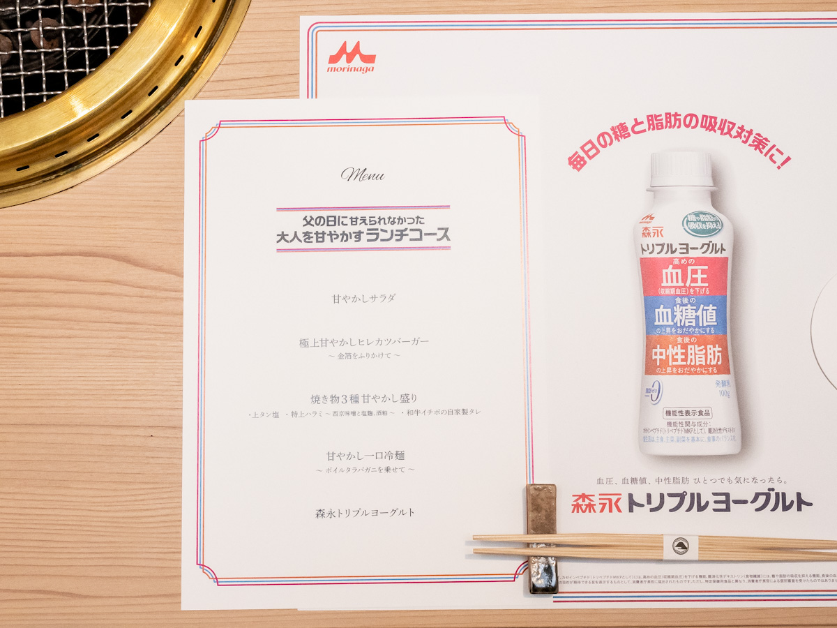 「森永トリプルヨーグルト」と「個室焼肉 富士門 恵比寿」がコラボした「父の日に甘えられなかった大人のための焼肉店」の紹介でした。